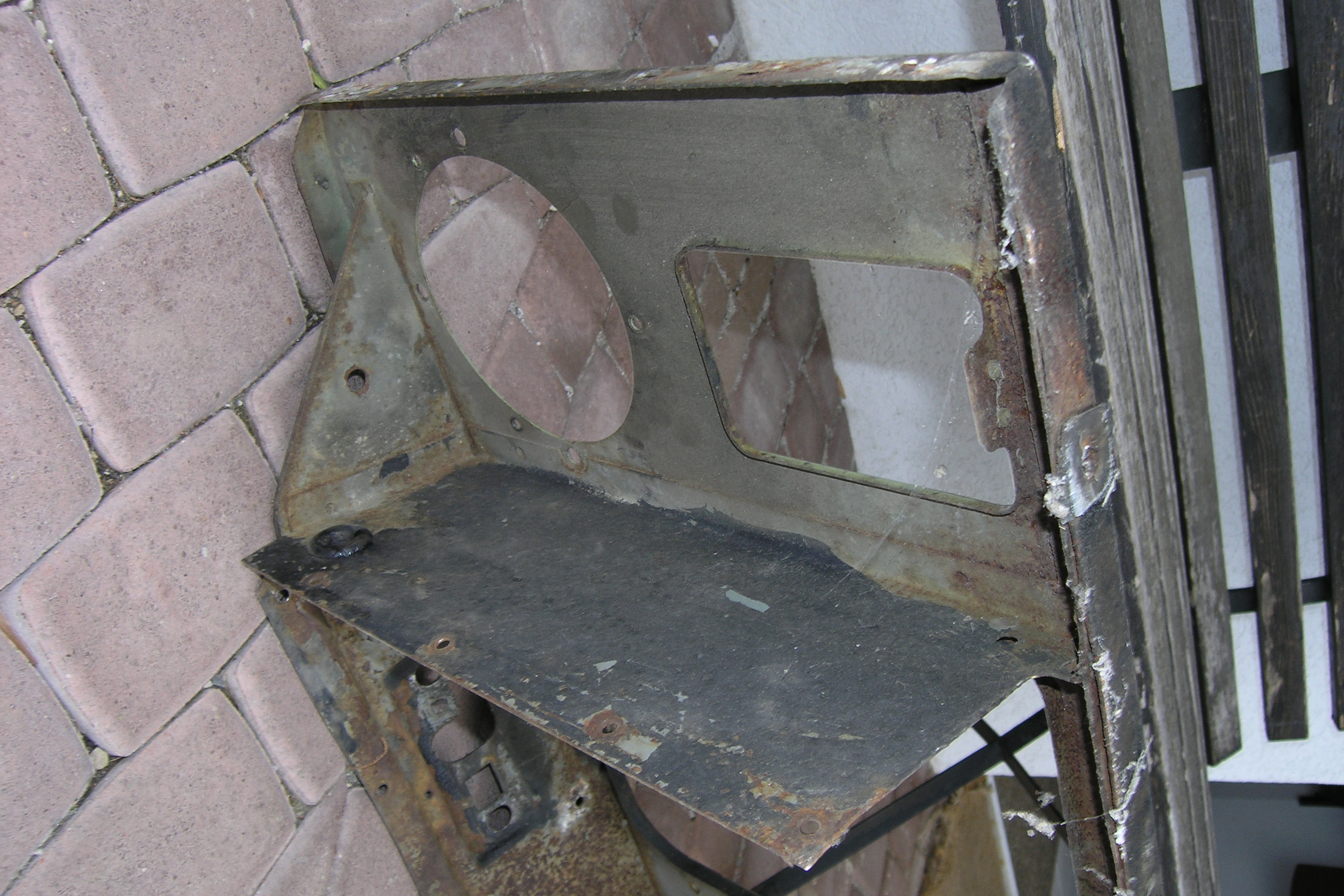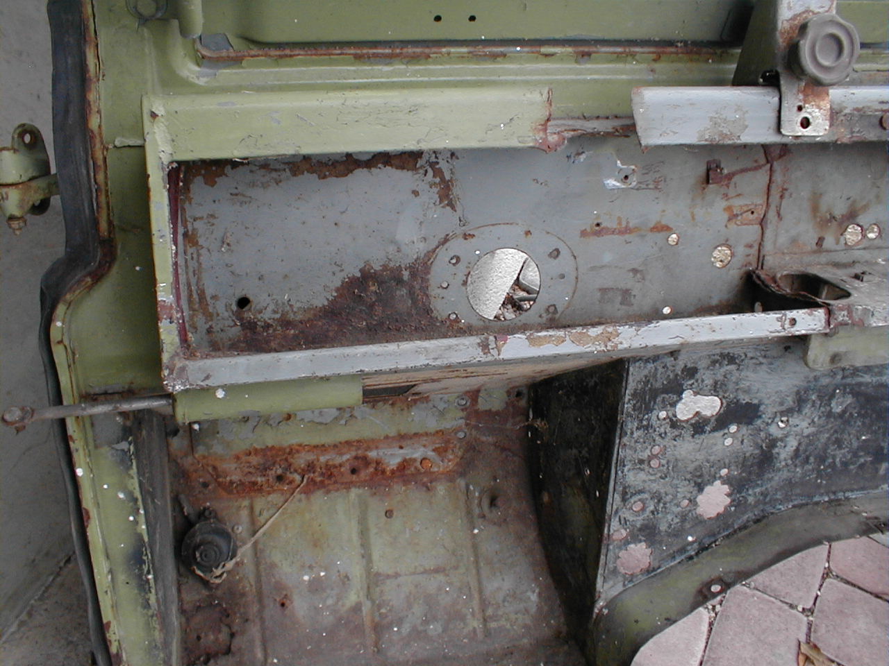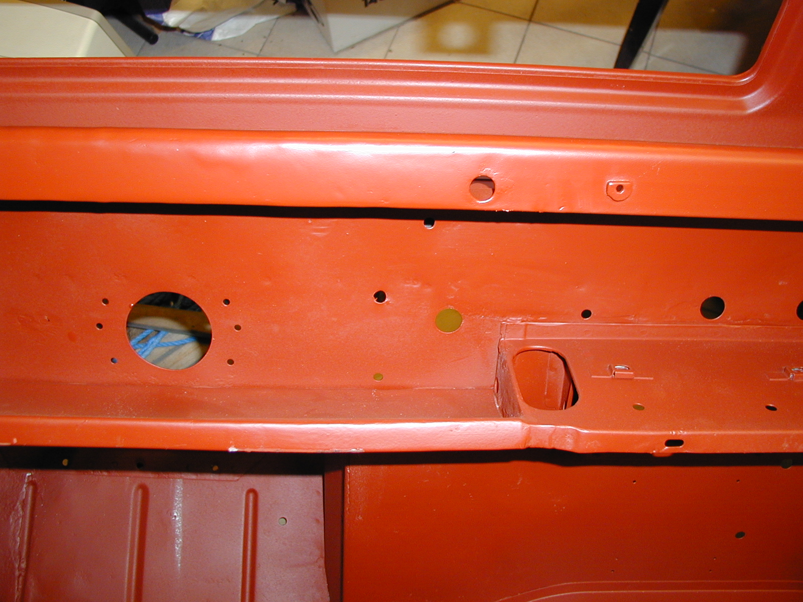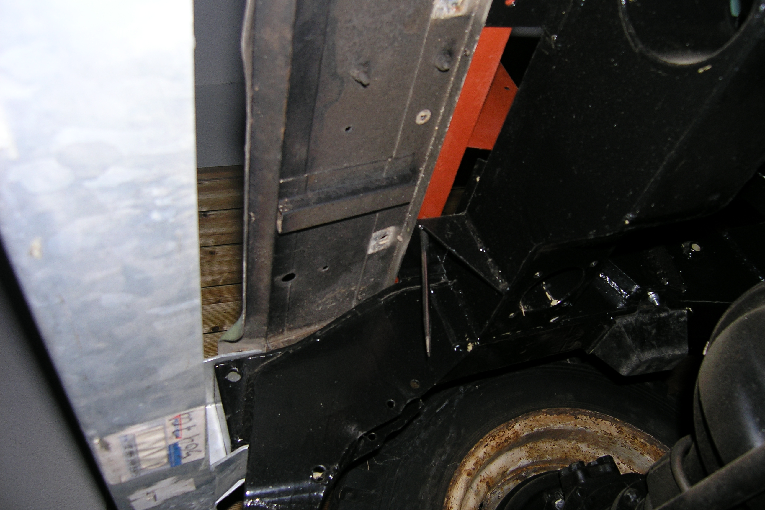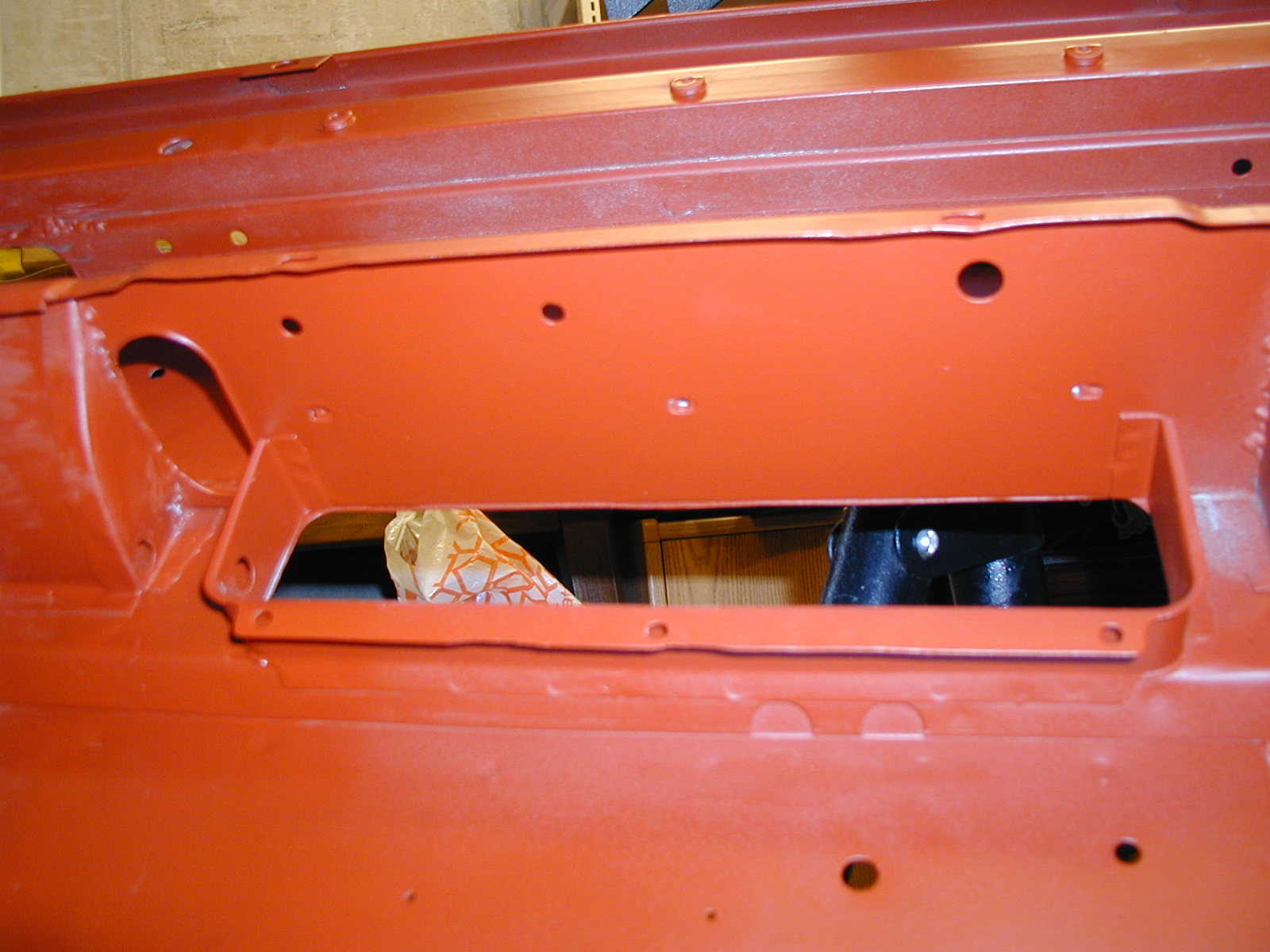 LR - 144002080 - Bulkhead - red-oxide - view of repaired "missing" section above steering wheel column |