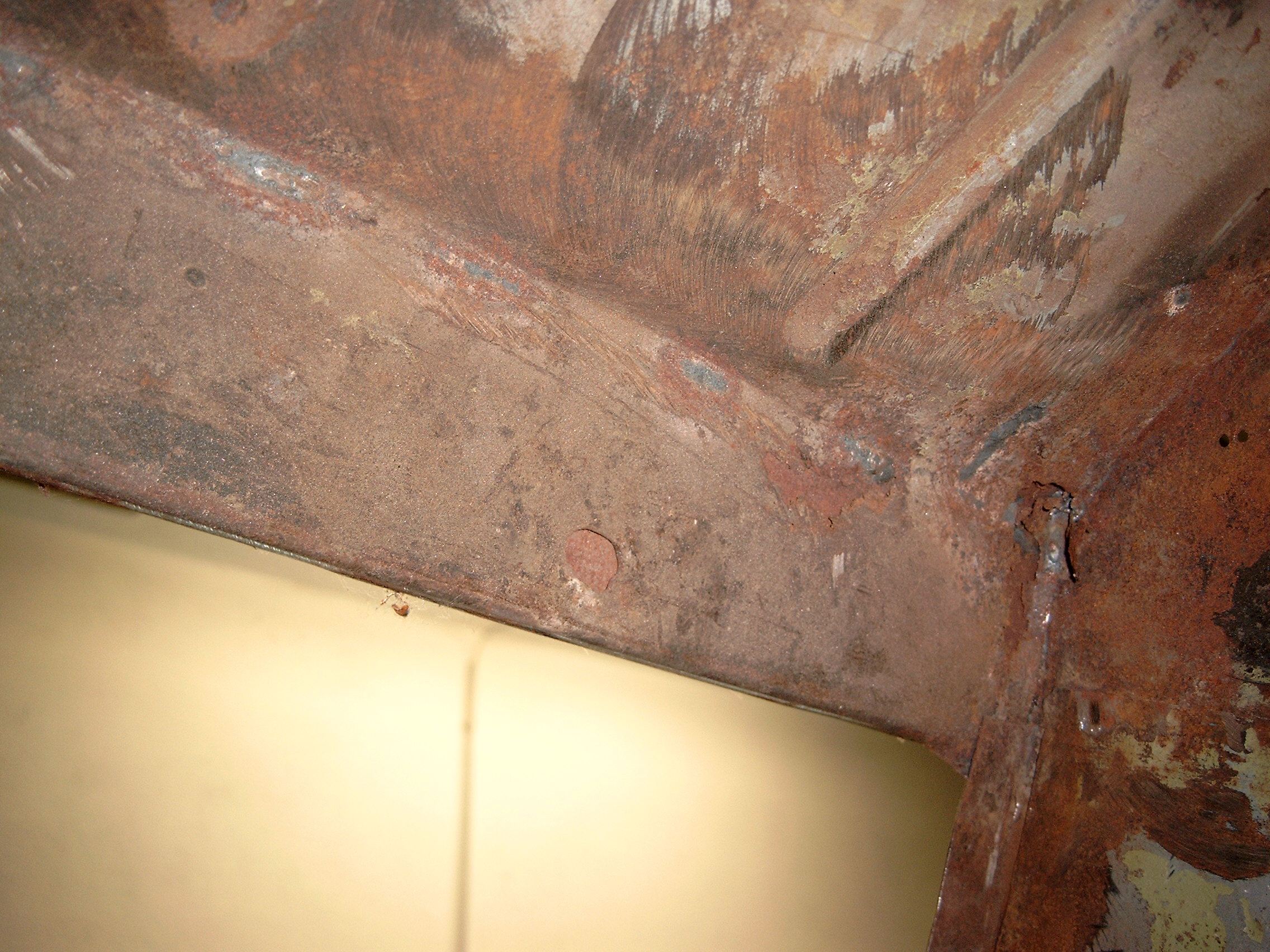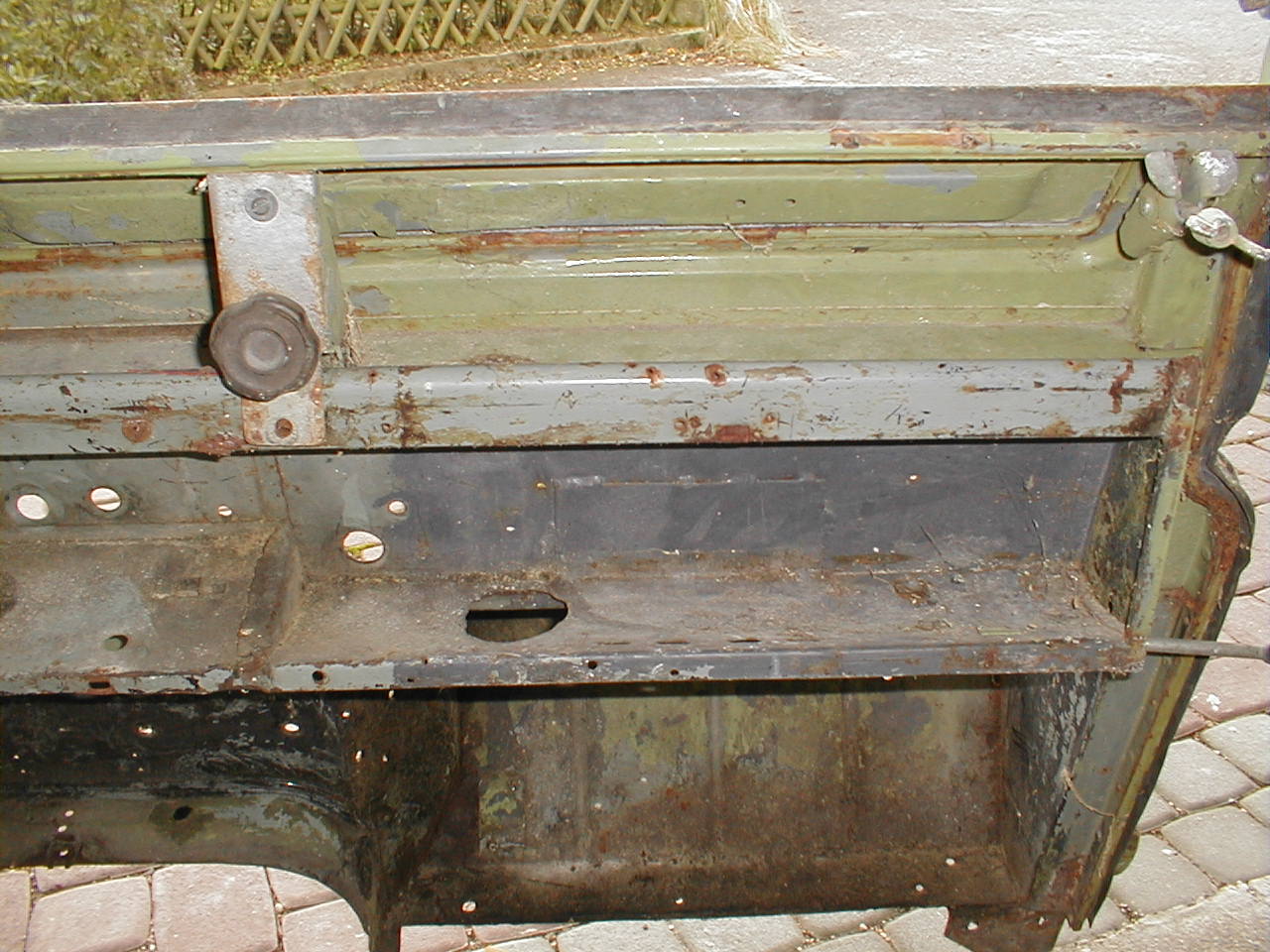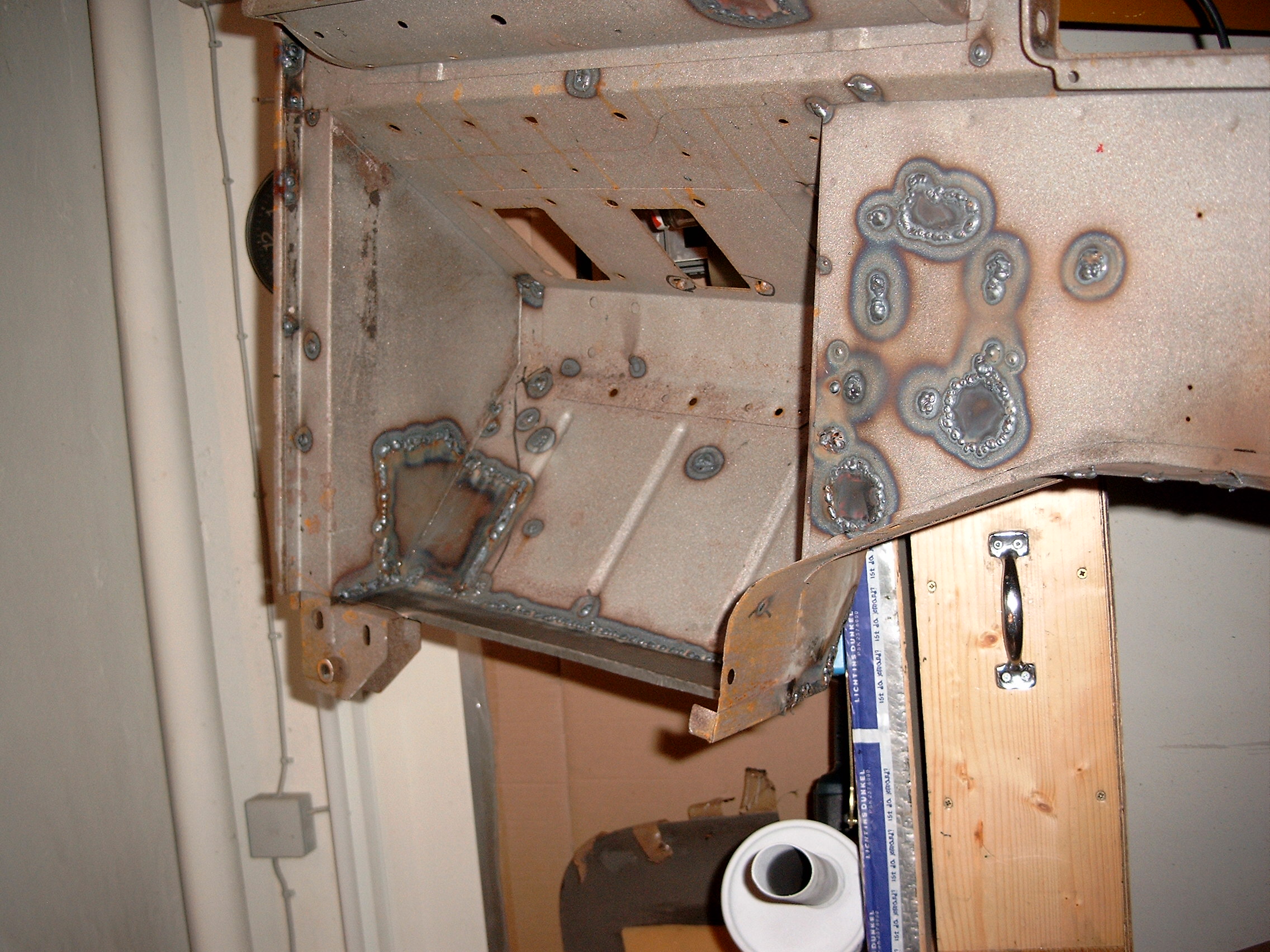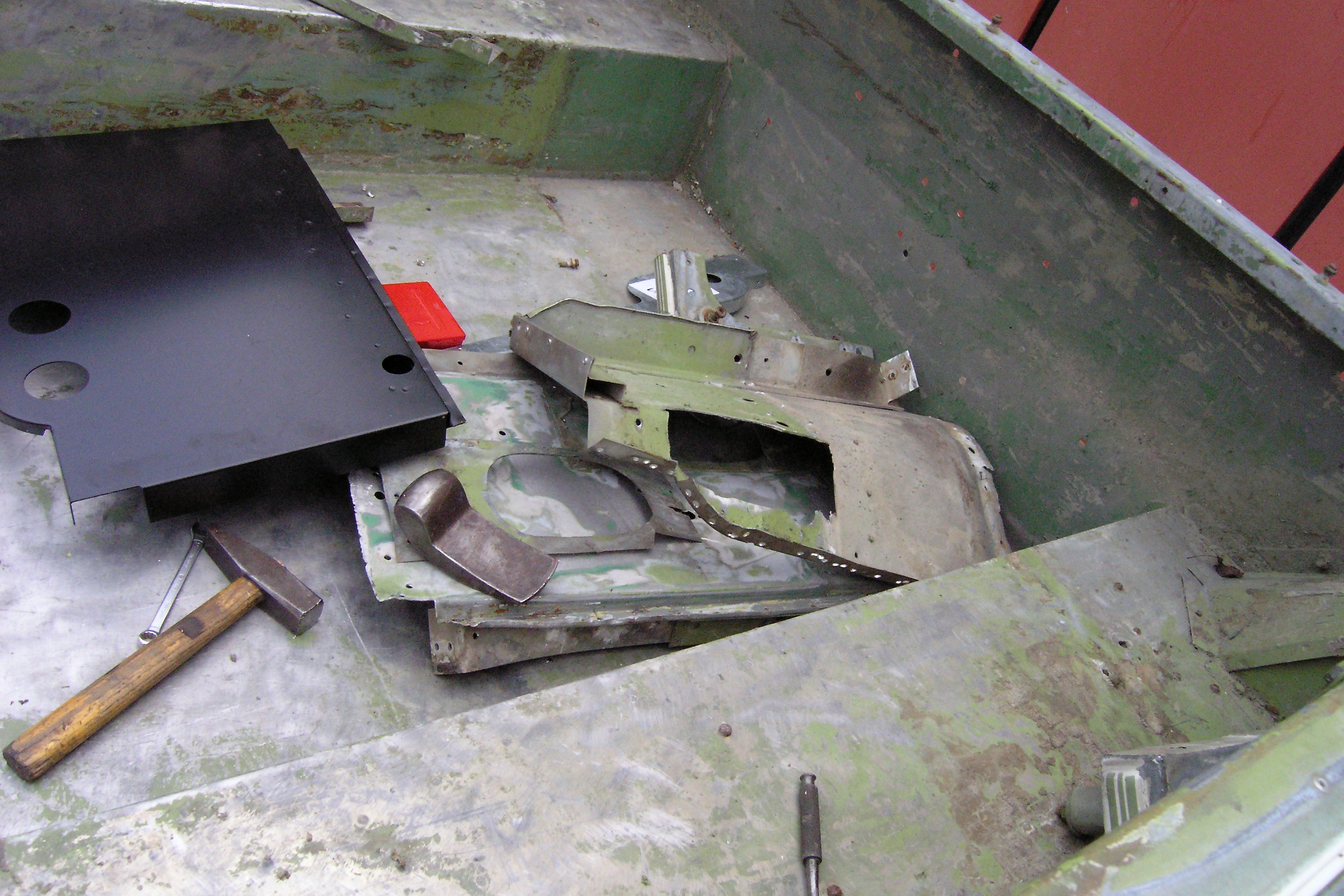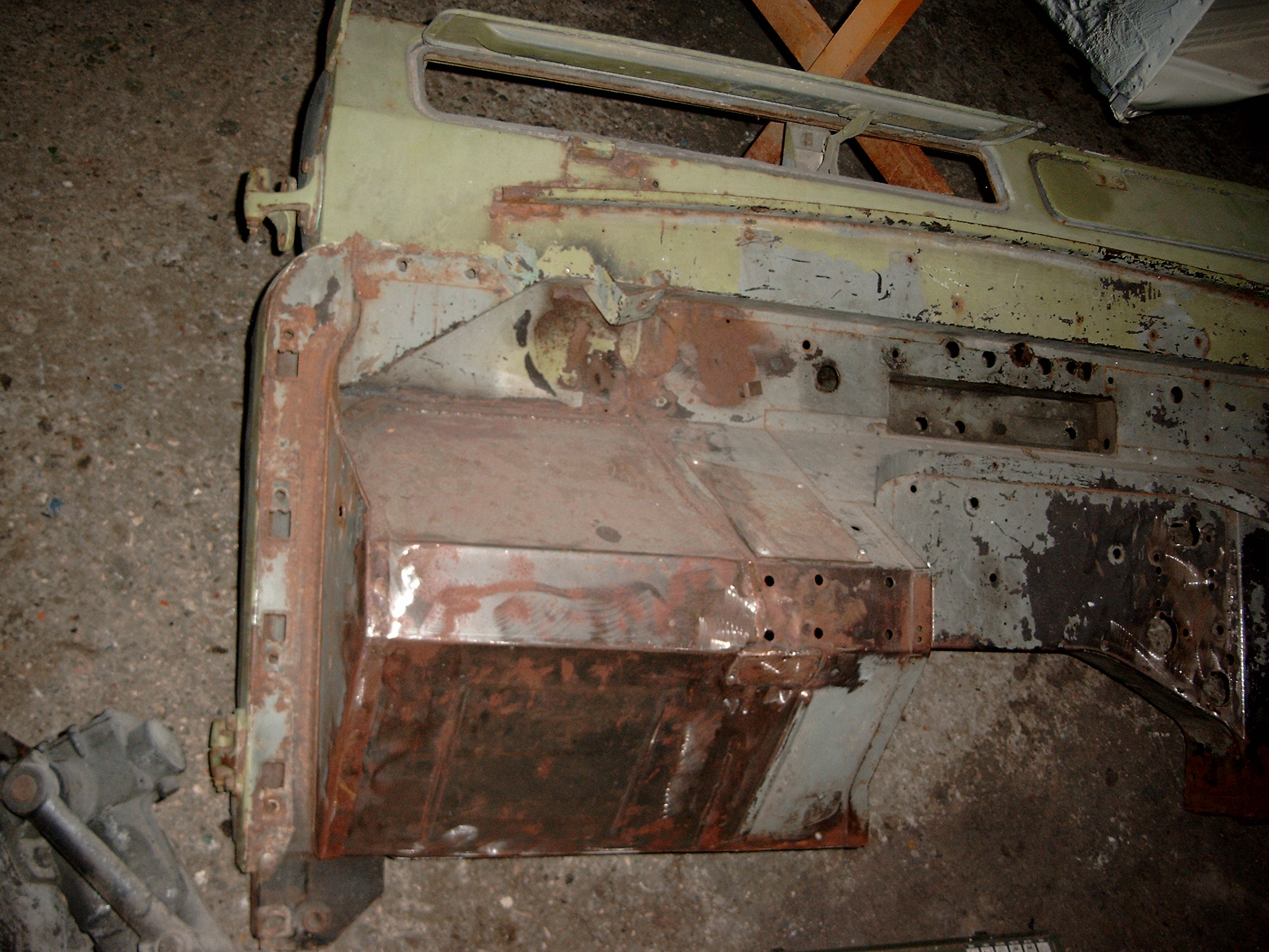 LR - 144002080 - Bulkhead - red-oxide - view of repaired "missing" section above steering wheel column |