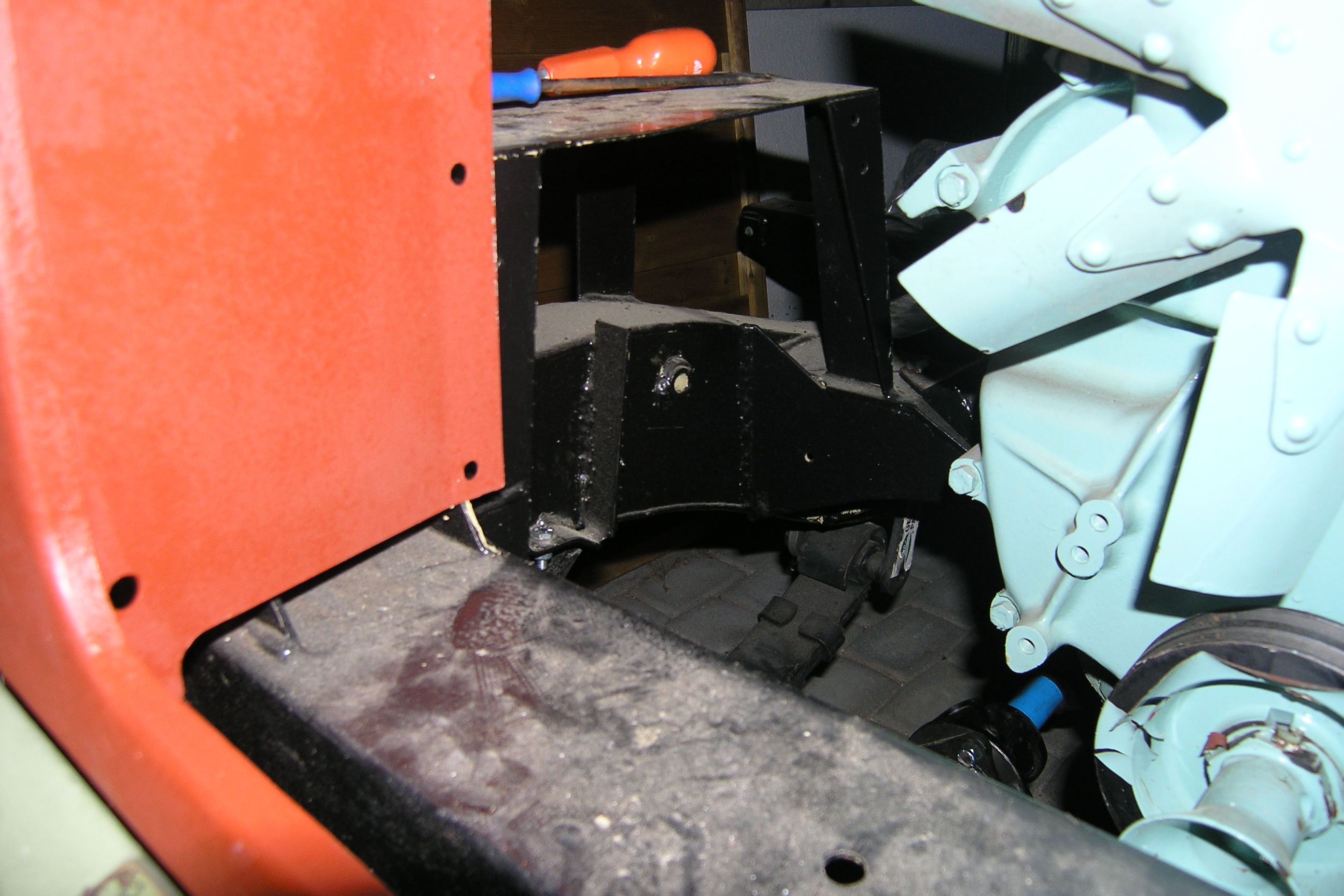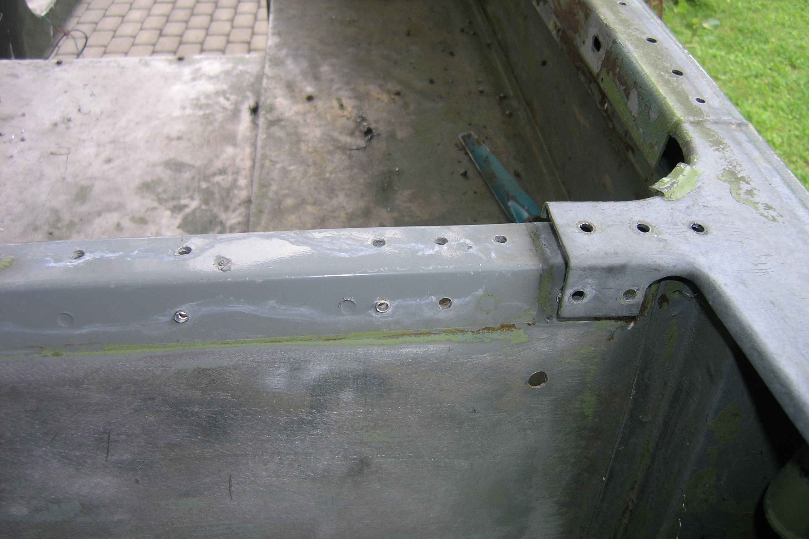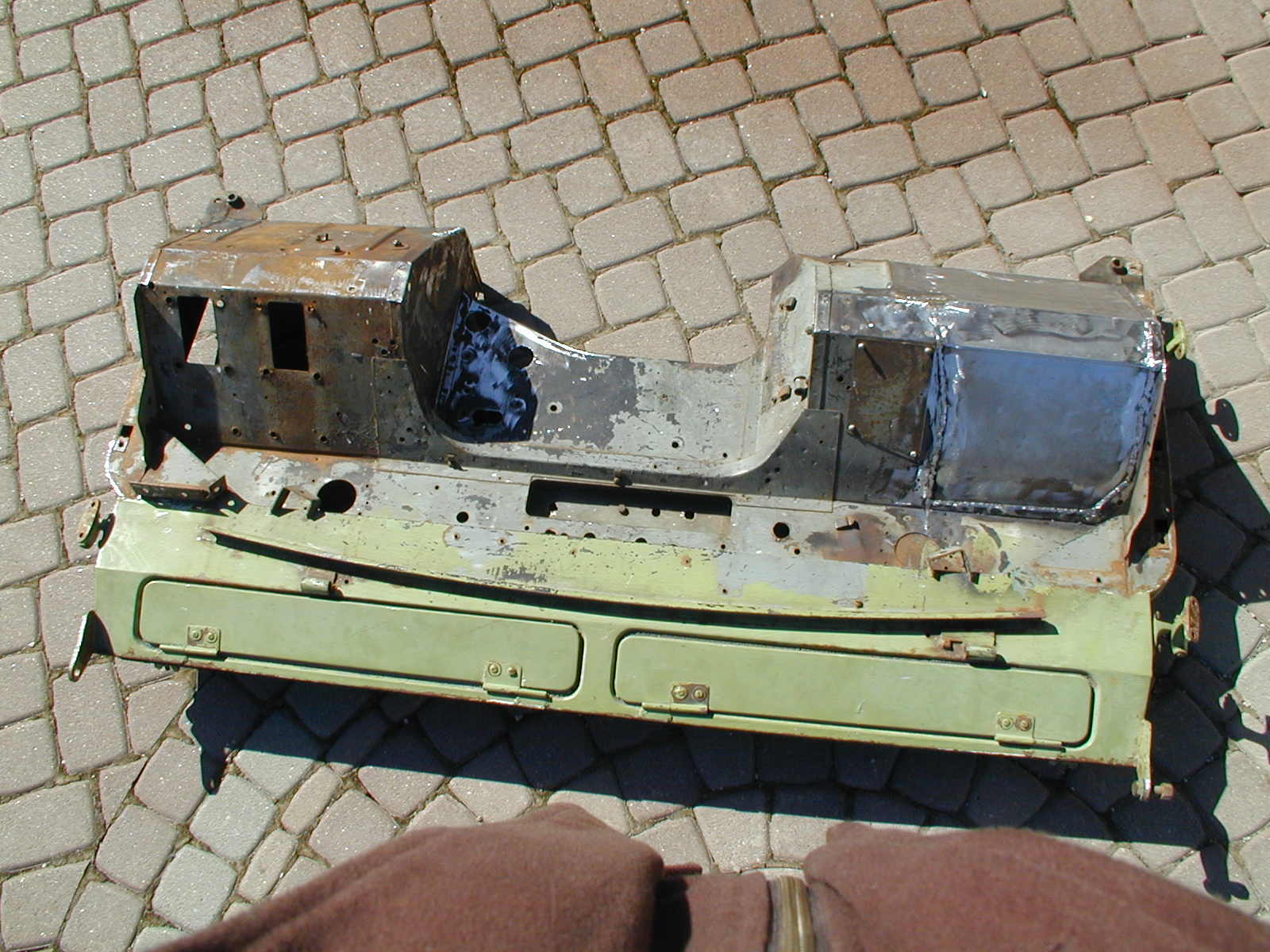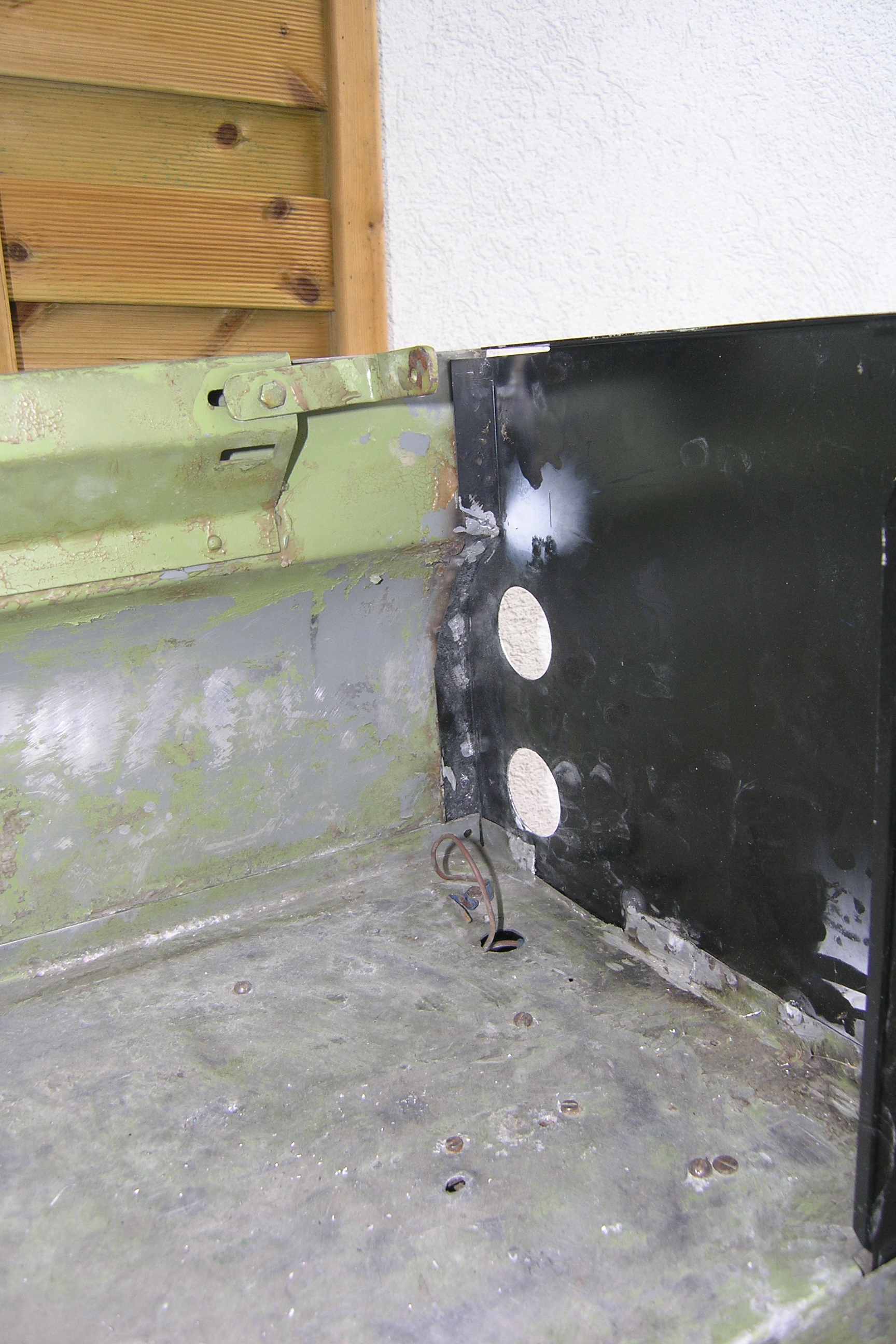 LR - 144002080 - Bulkhead - red-oxide - view of repaired "missing" section above steering wheel column |