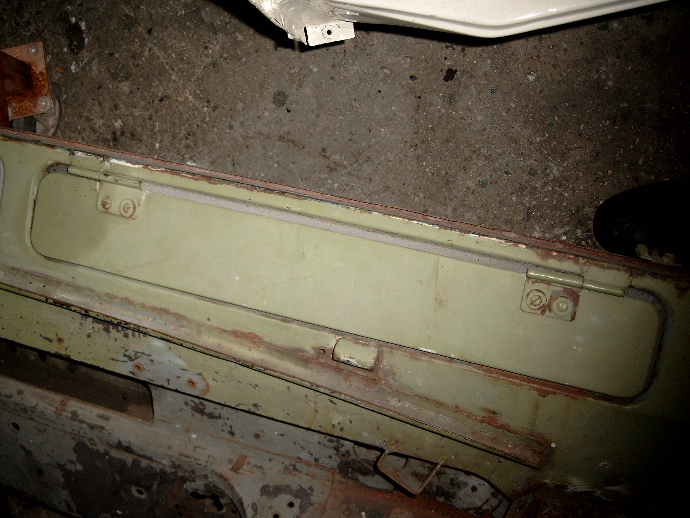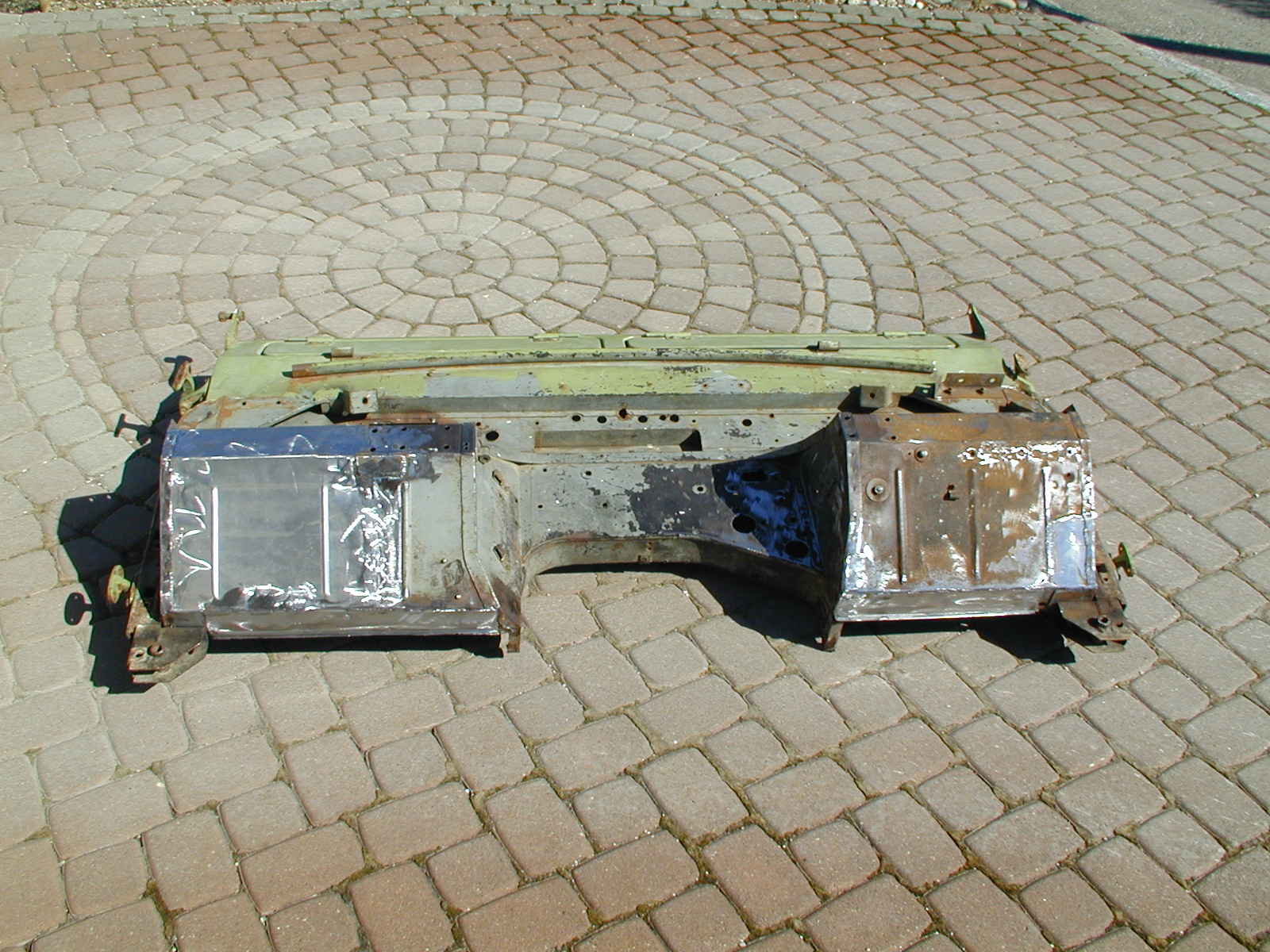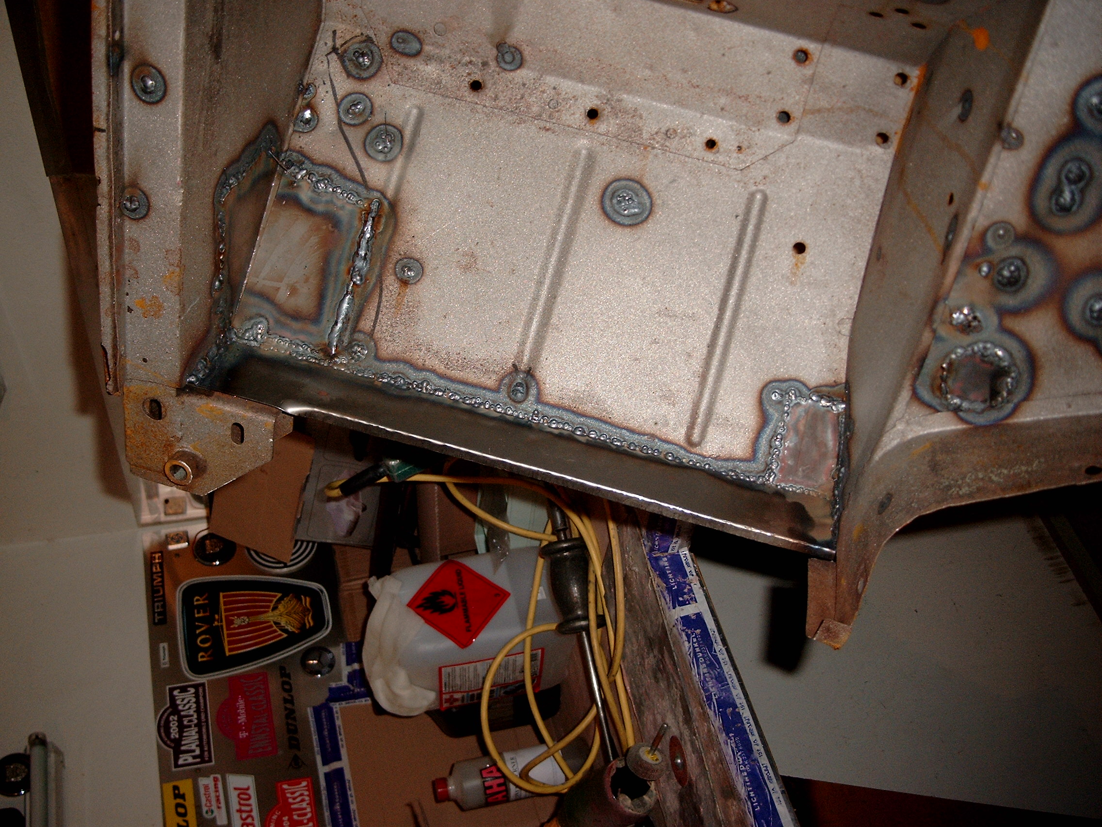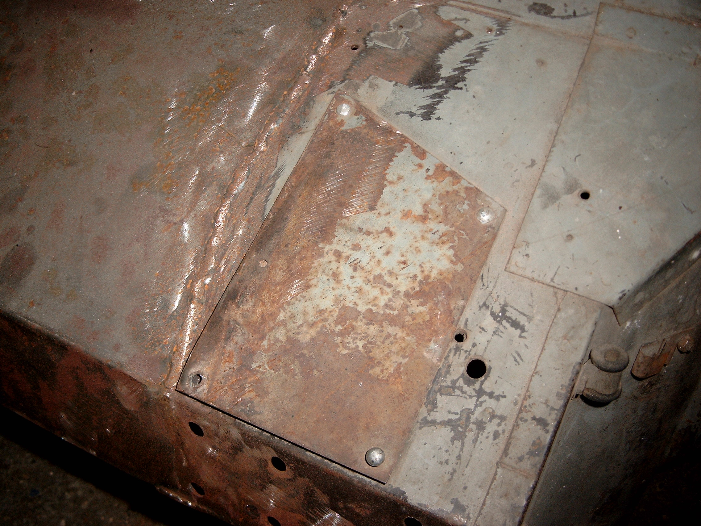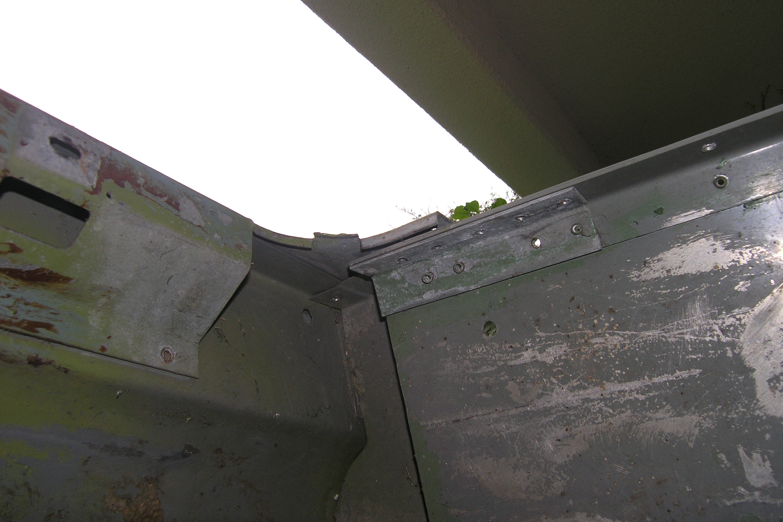 LR - 144002080 - Bulkhead - red-oxide - view of repaired "missing" section above steering wheel column |