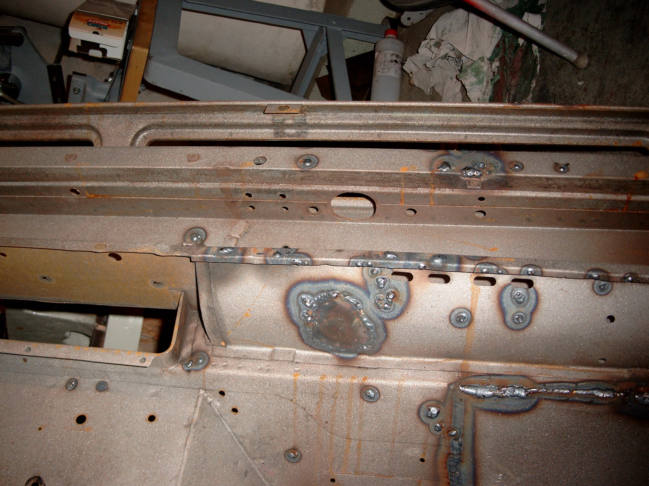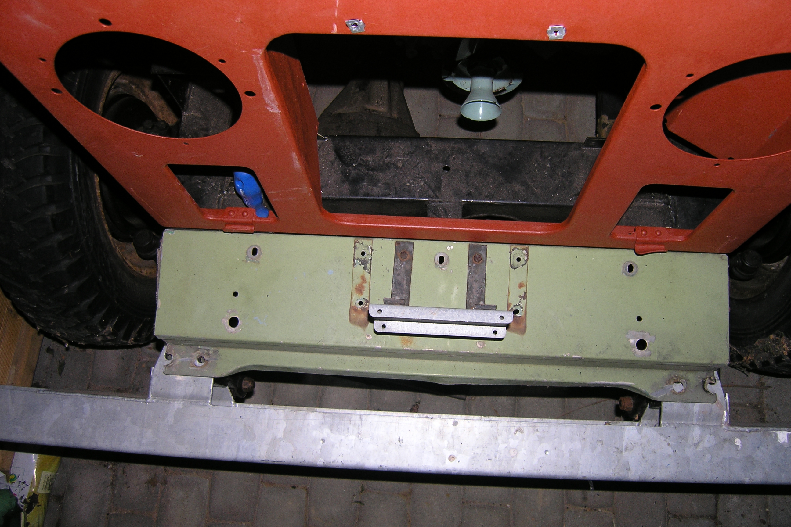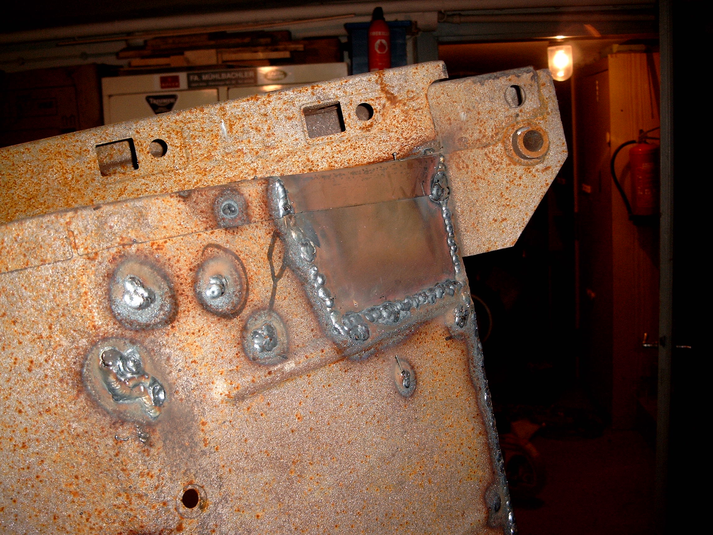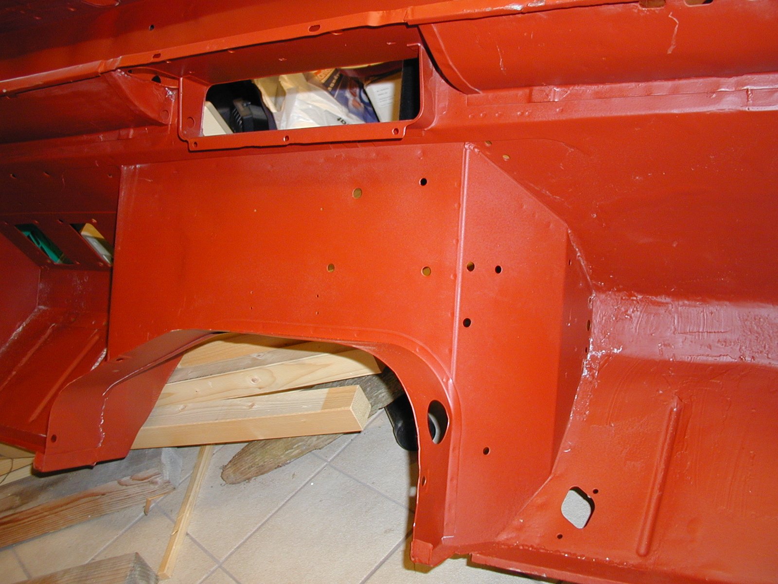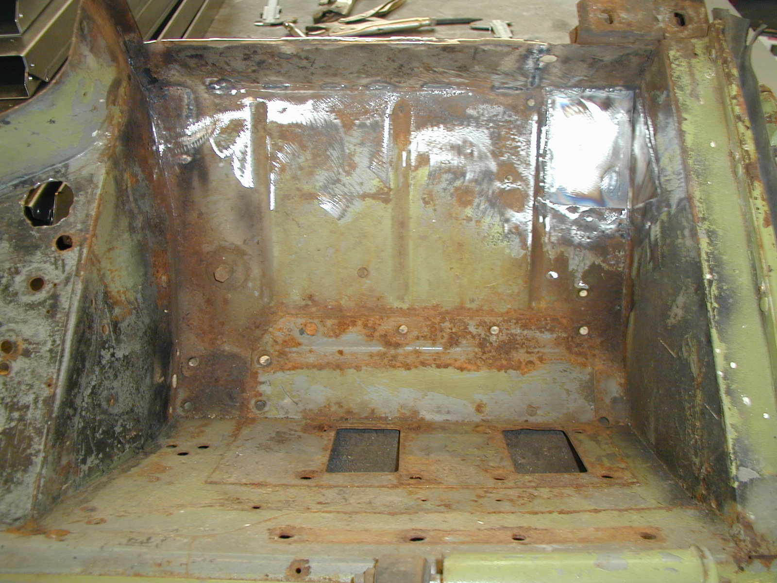 LR - 144002080 - Bulkhead - red-oxide - view of repaired "missing" section above steering wheel column |