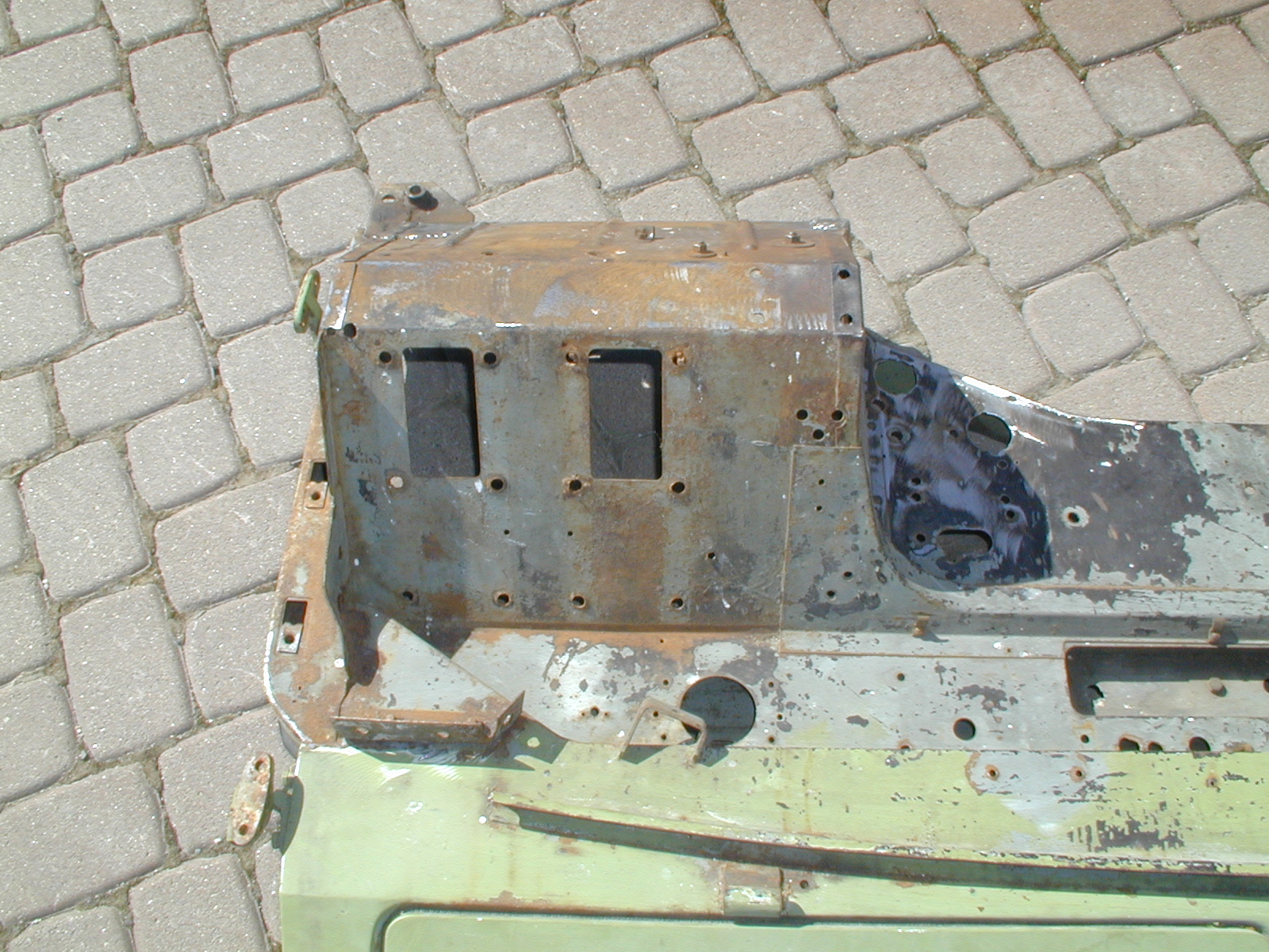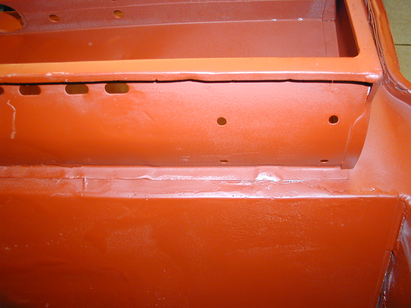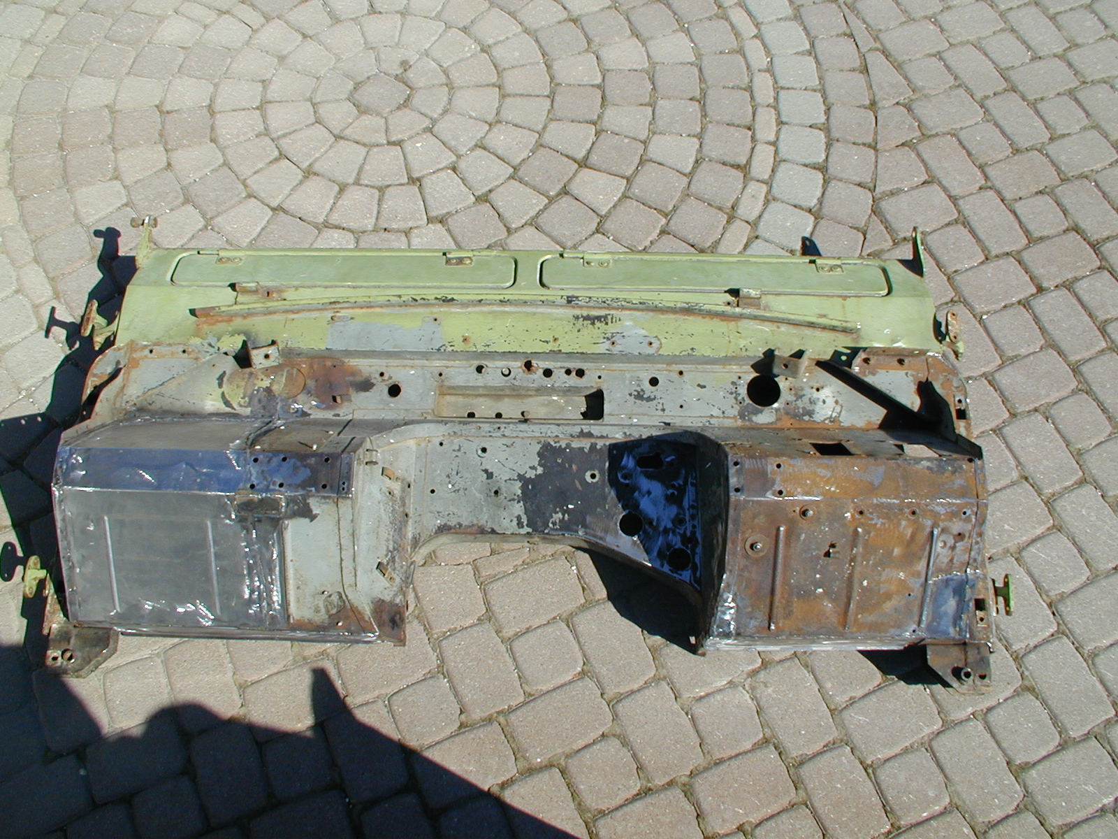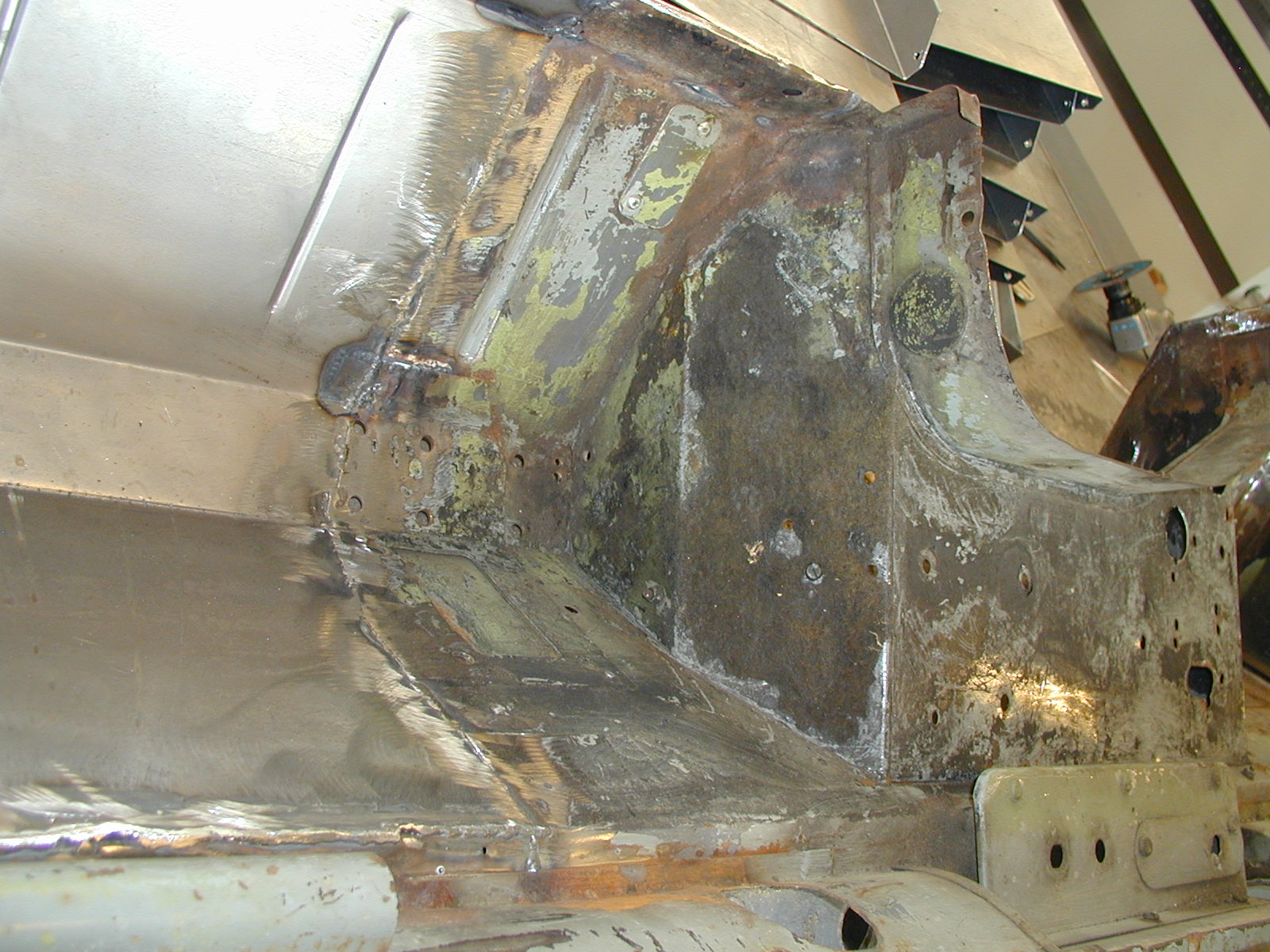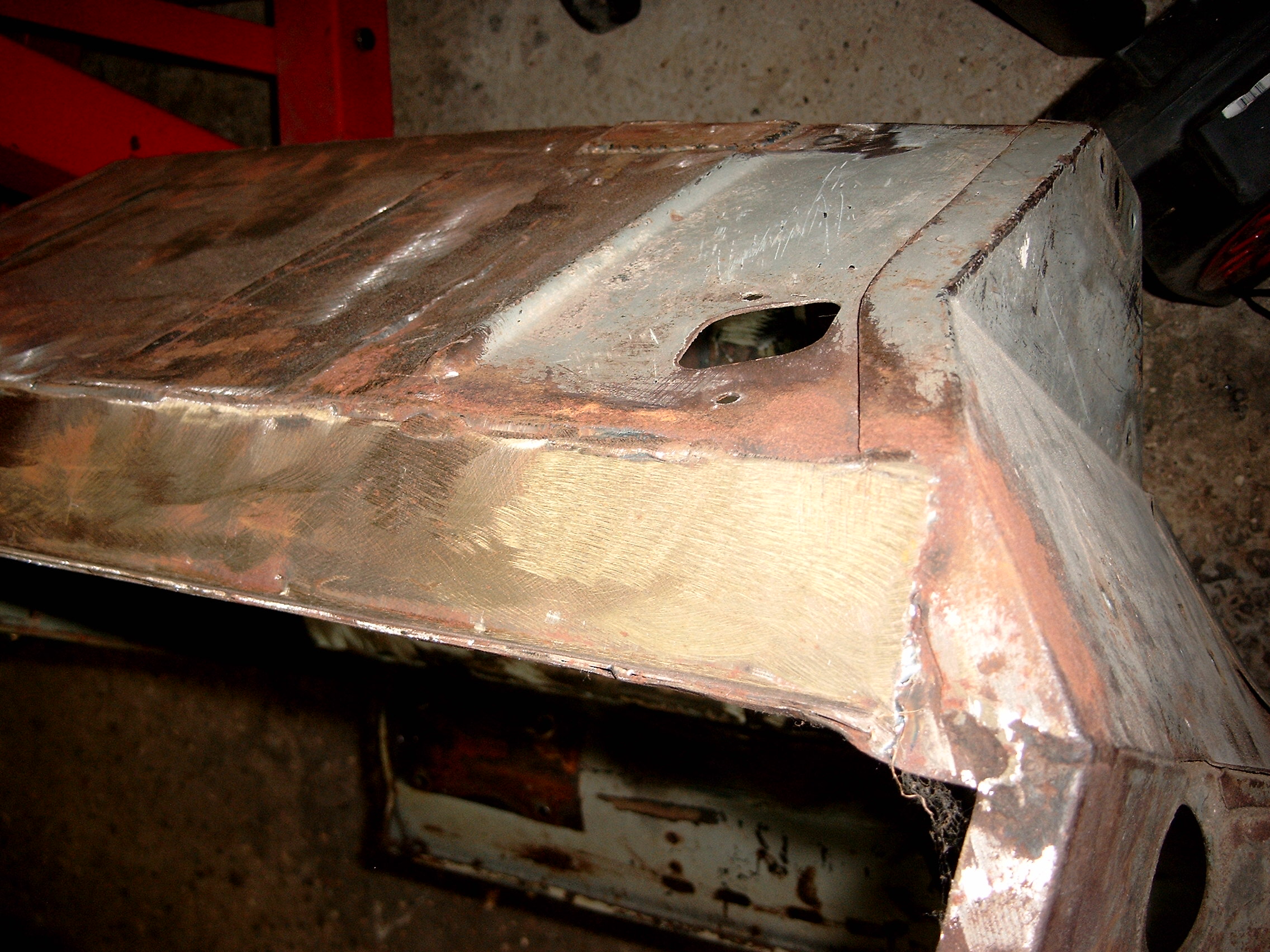 LR - 144002080 - Bulkhead - red-oxide - view of repaired "missing" section above steering wheel column |