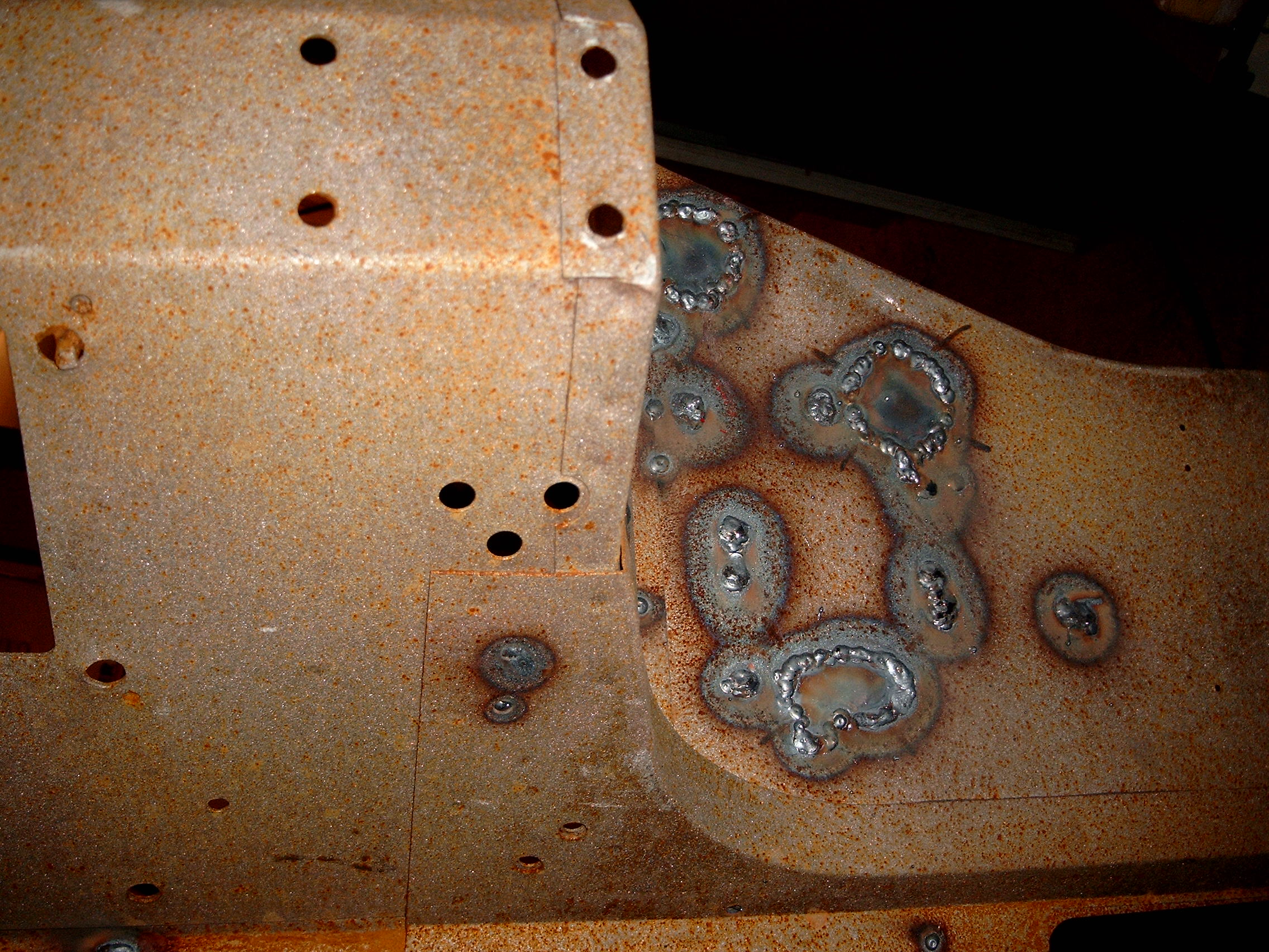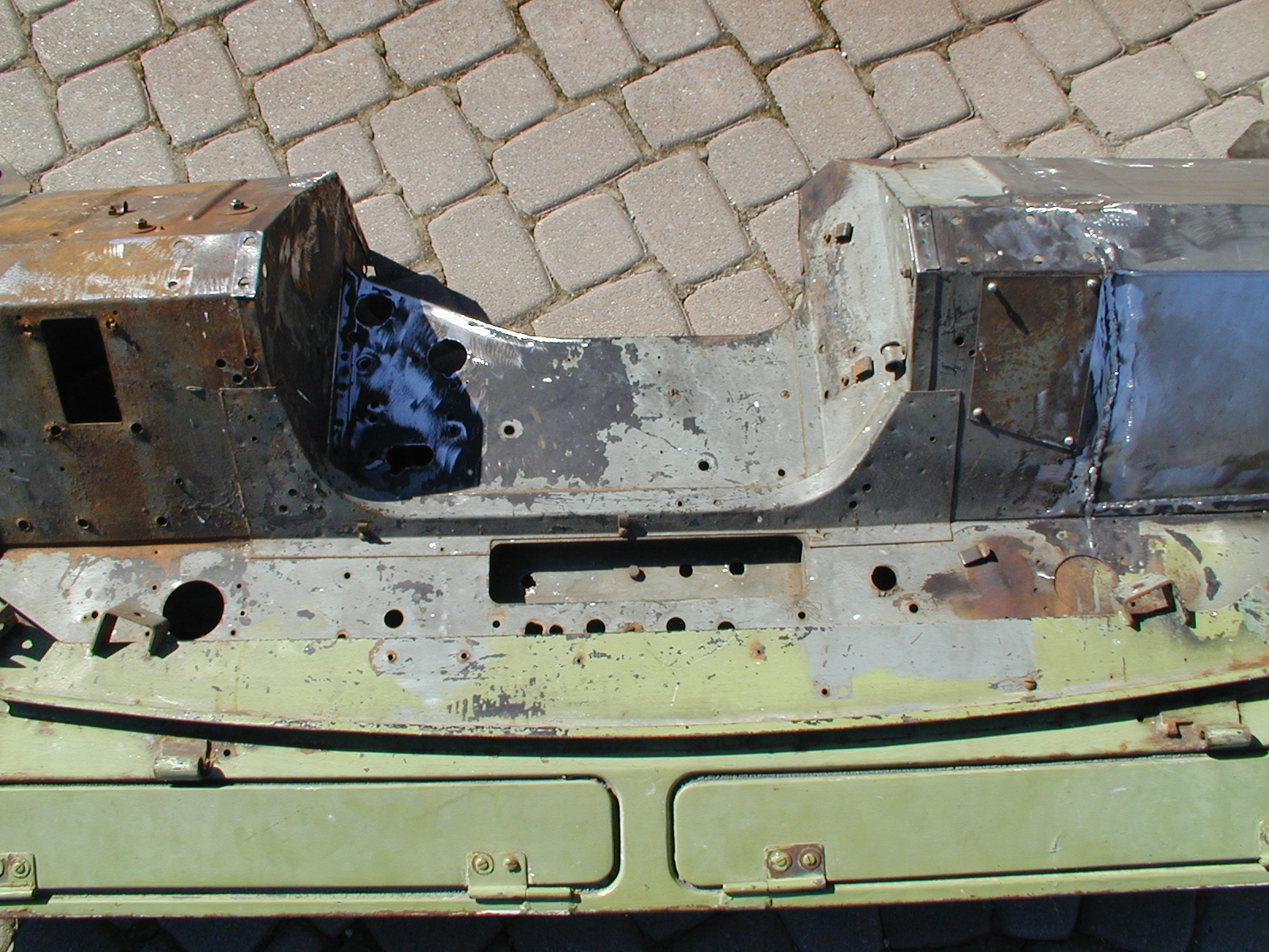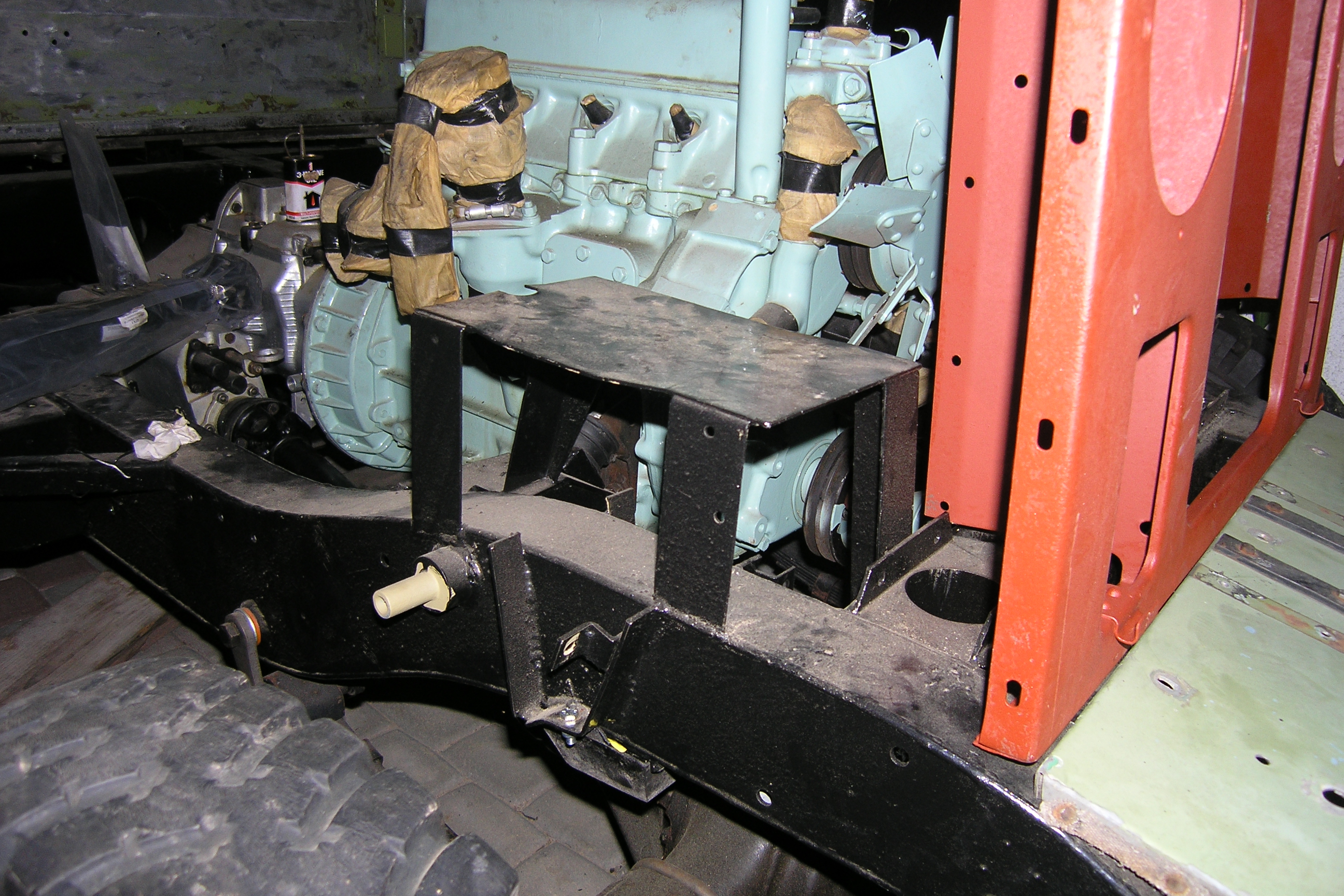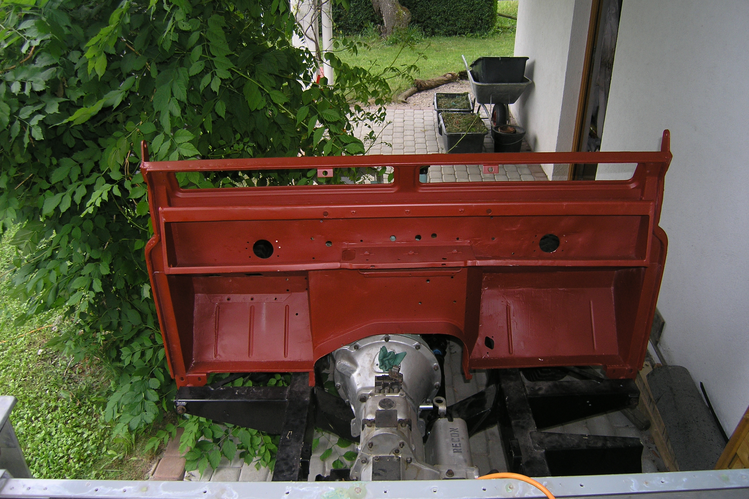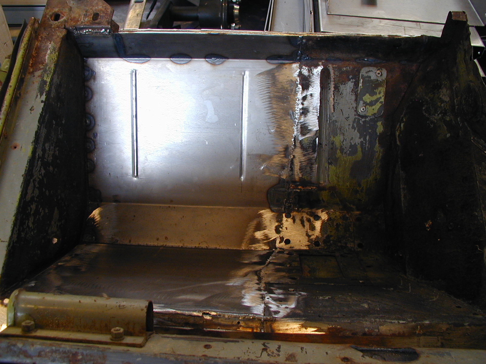 LR - 144002080 - Bulkhead - red-oxide - view of repaired "missing" section above steering wheel column |