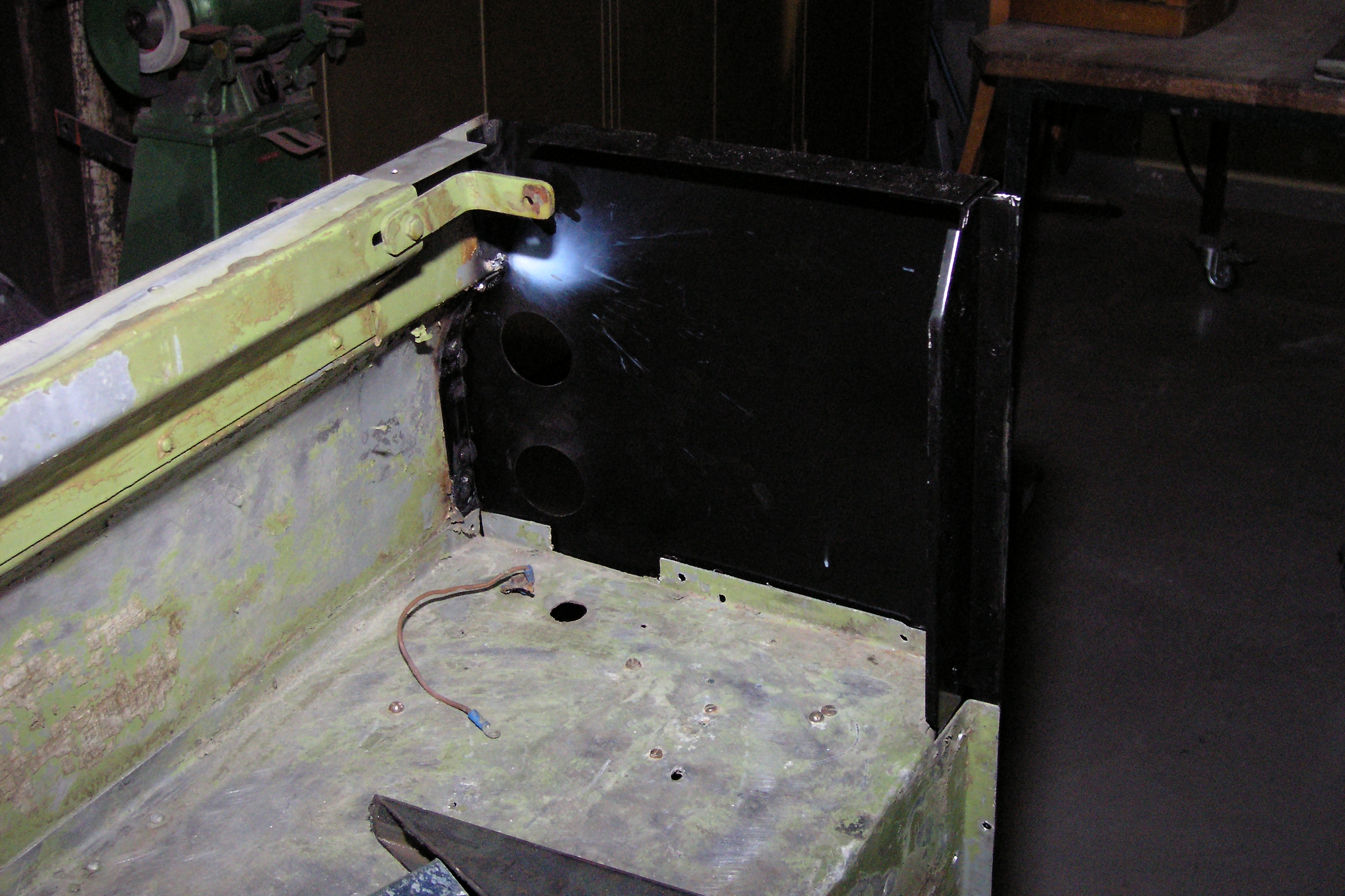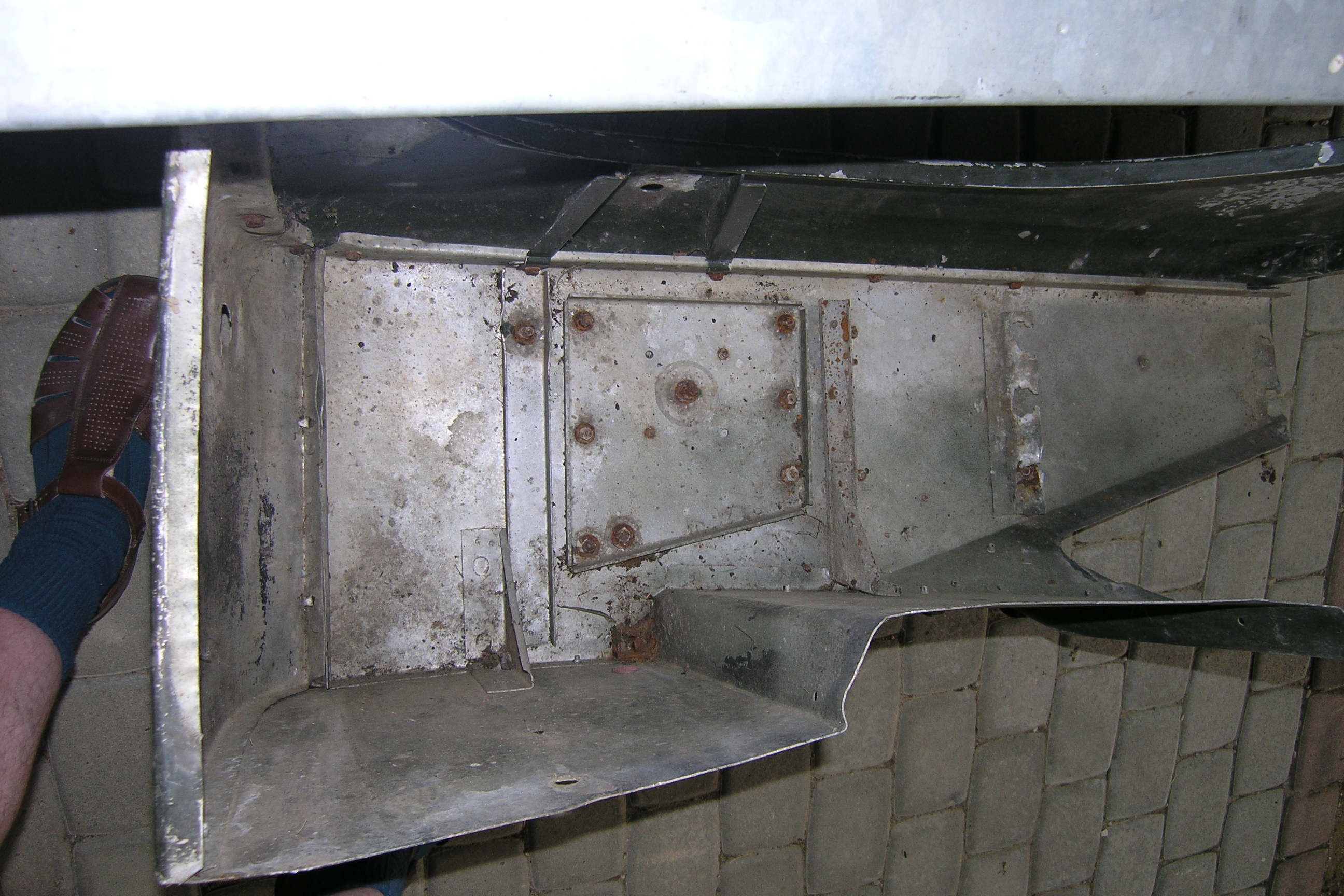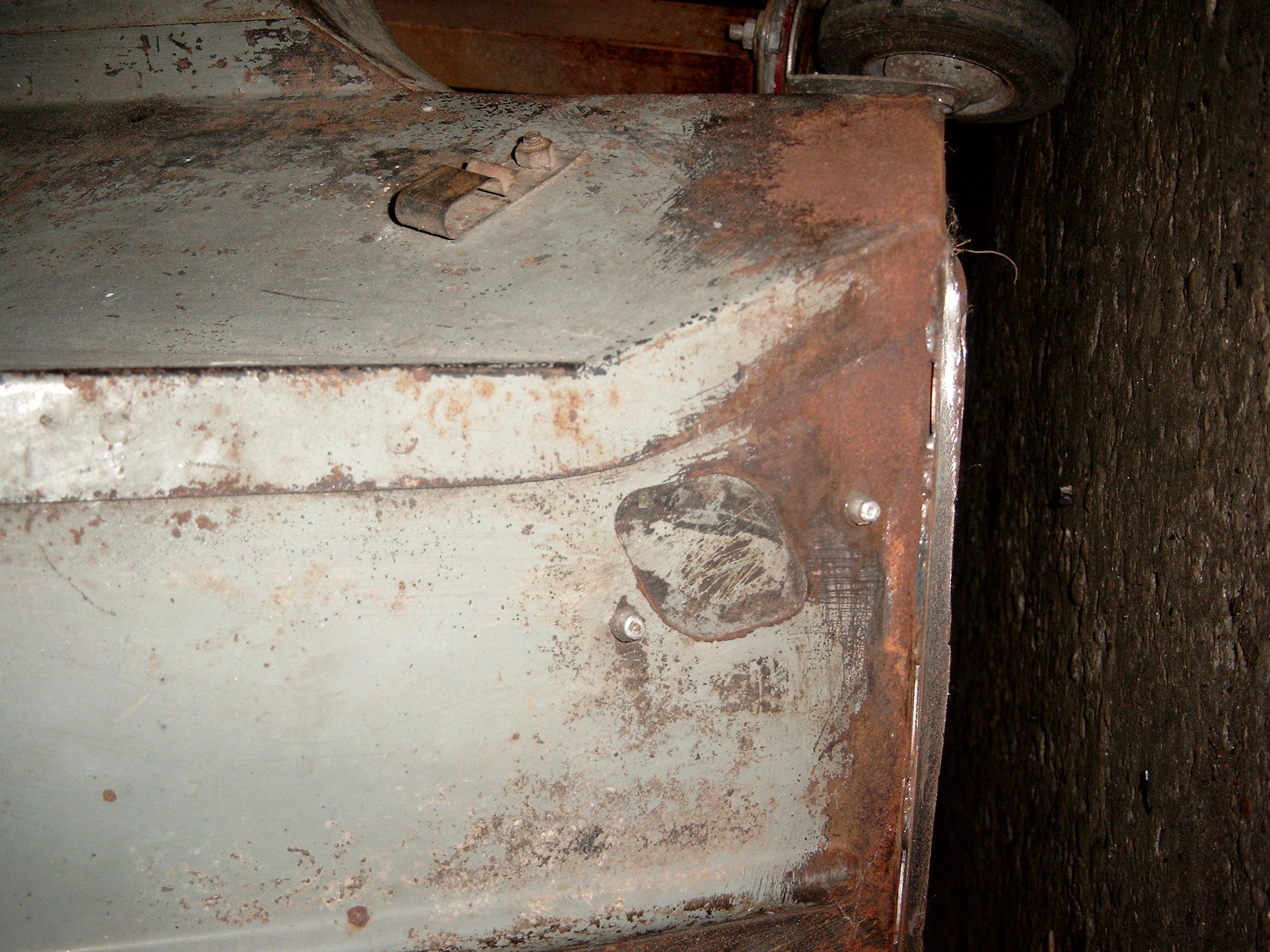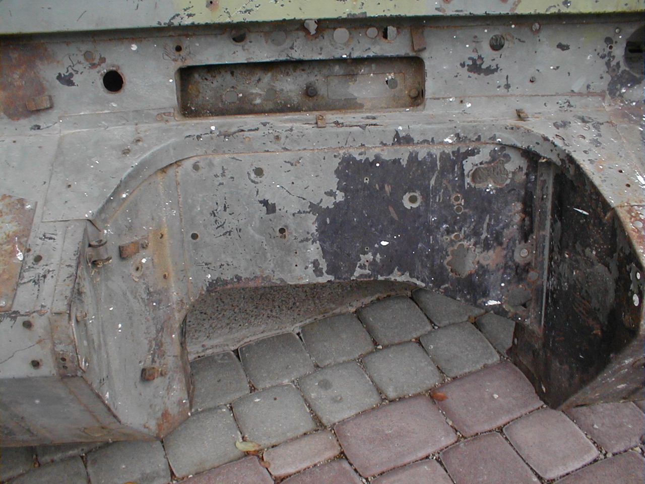 LR - 144002080 - Bulkhead - red-oxide - view of repaired "missing" section above steering wheel column |