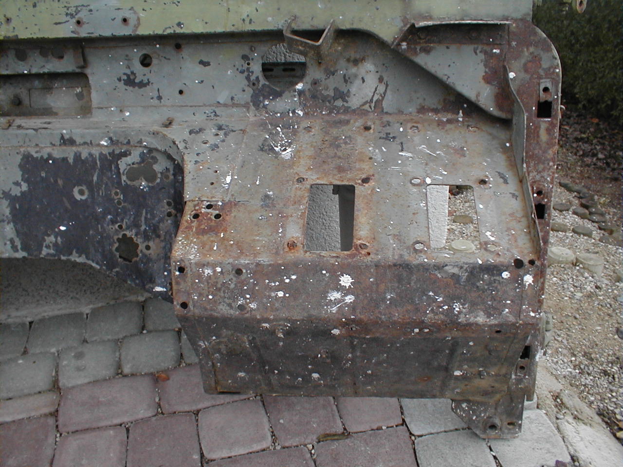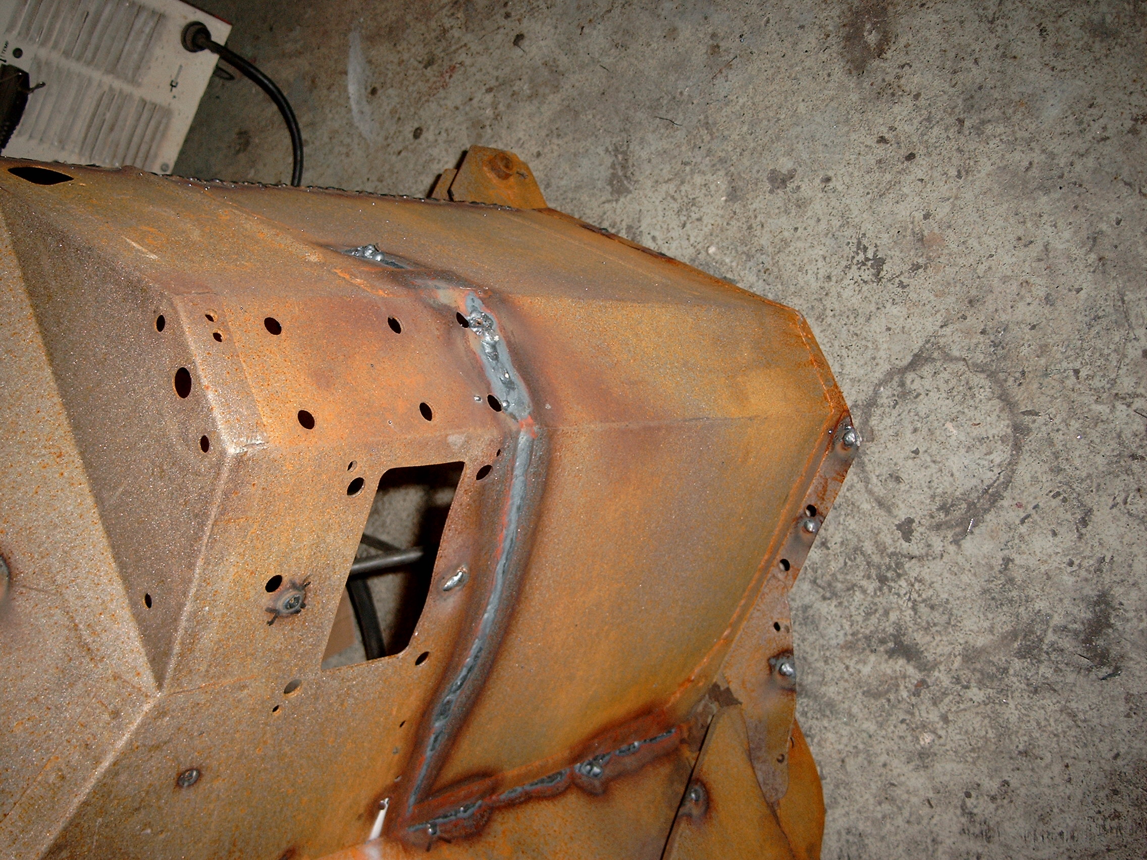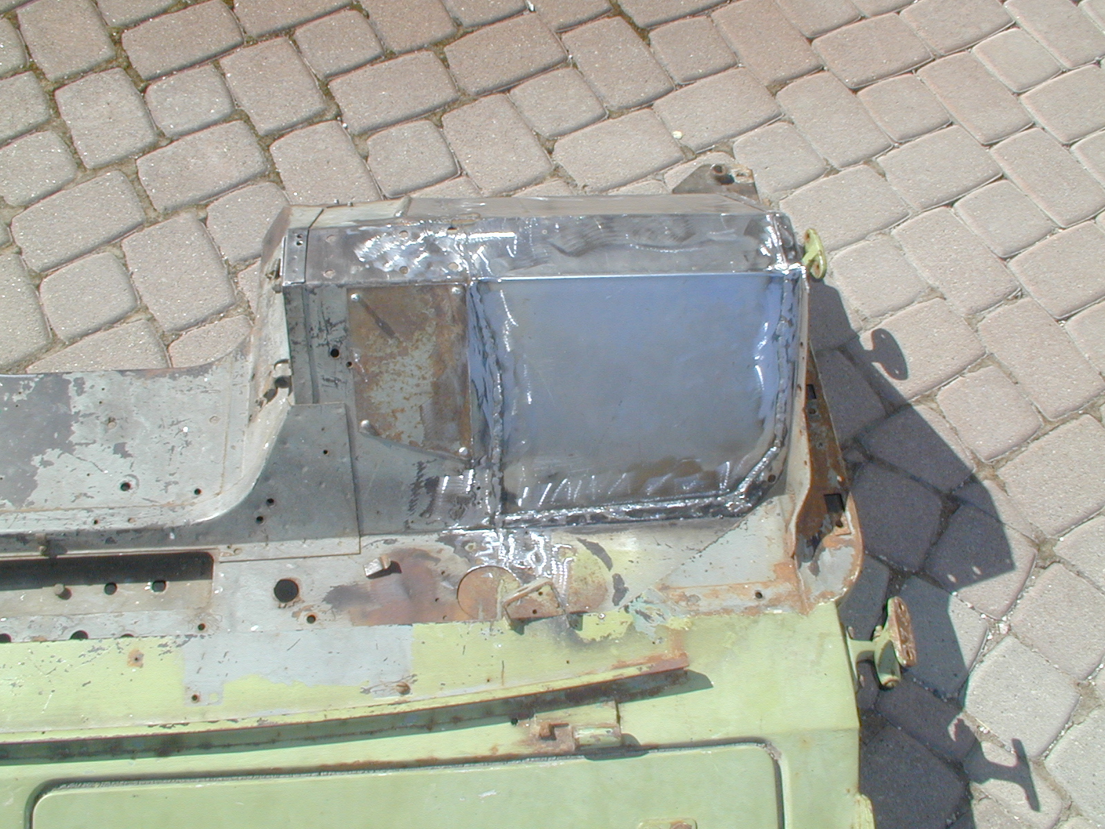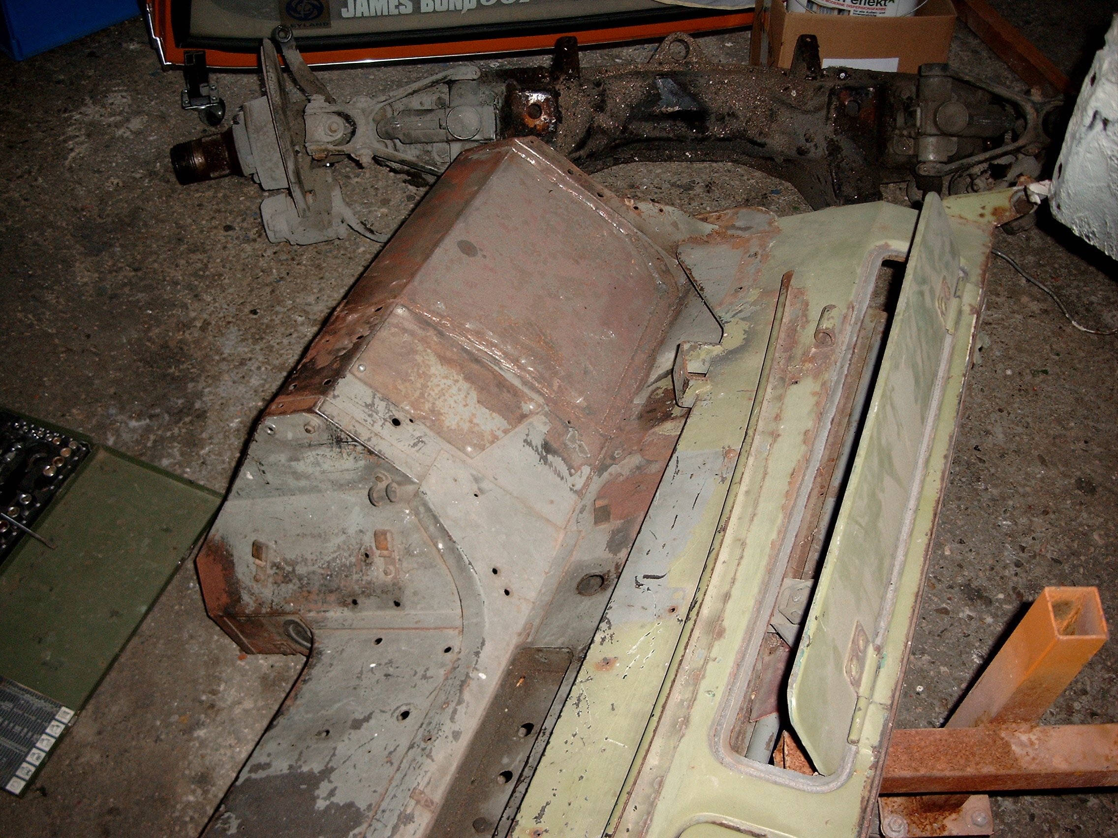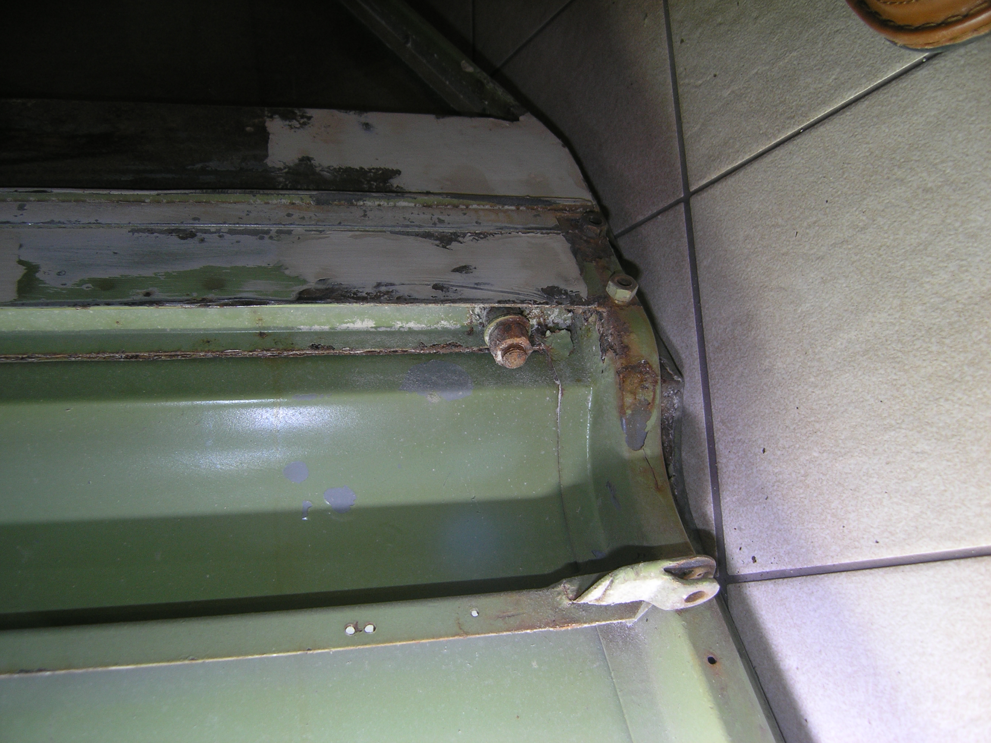 LR - 144002080 - Bulkhead - red-oxide - view of repaired "missing" section above steering wheel column |
