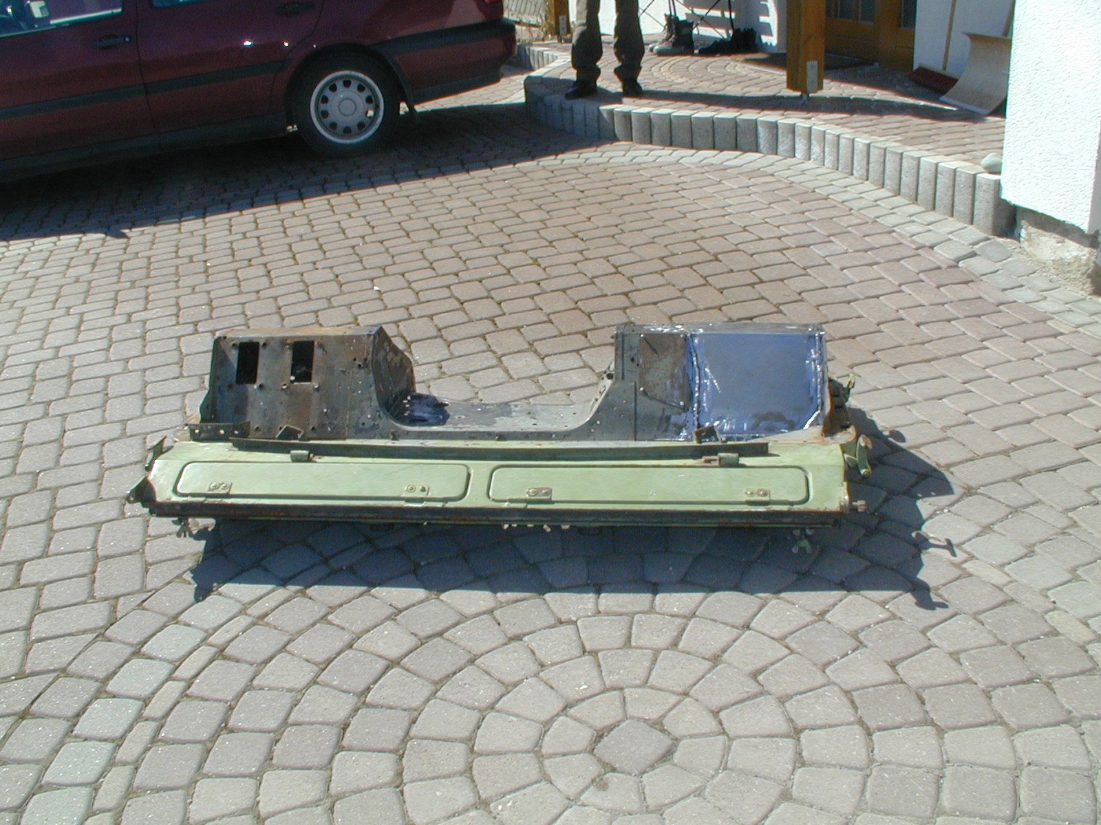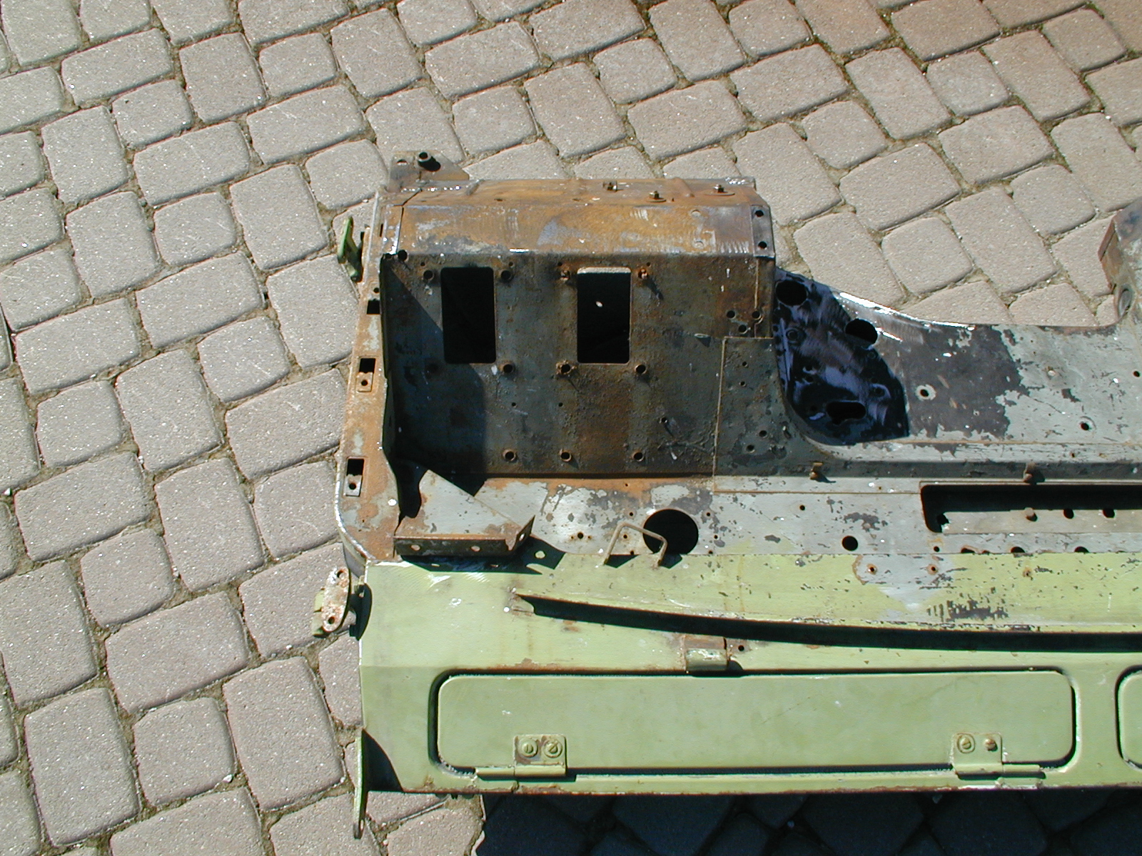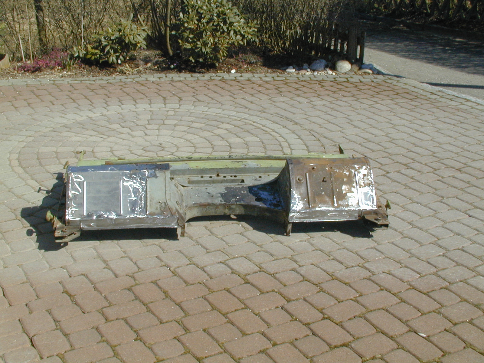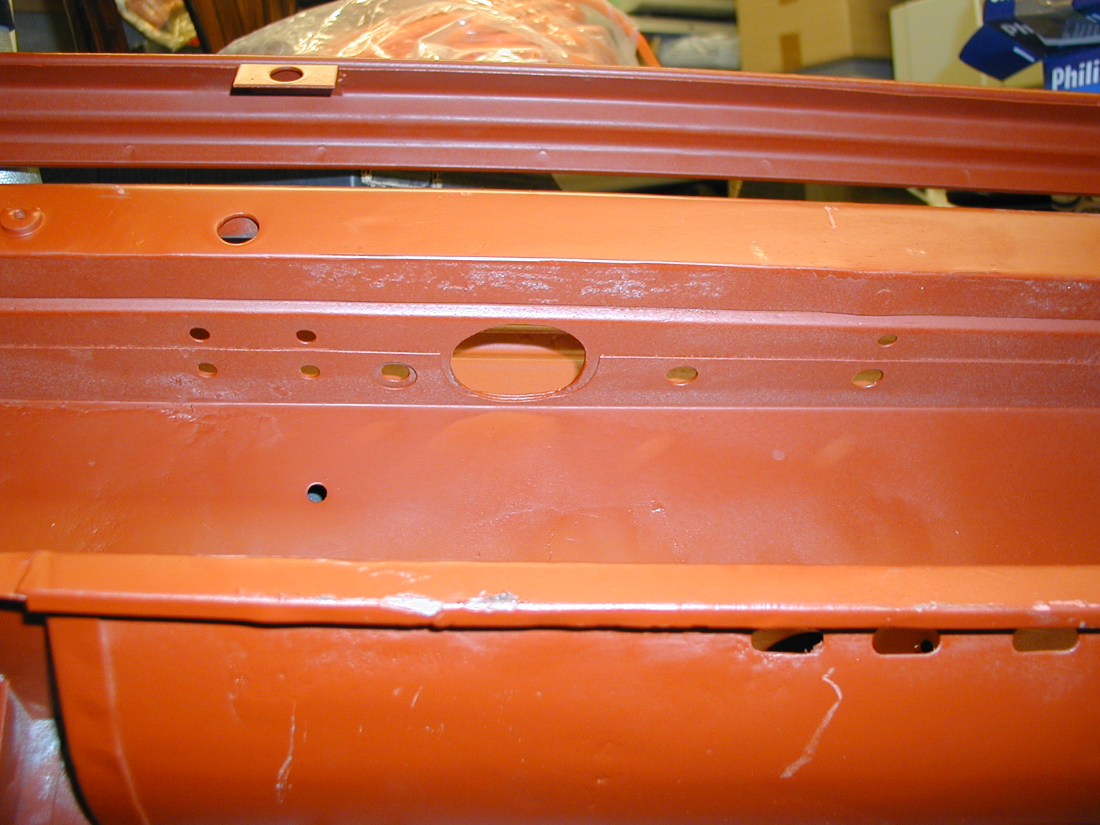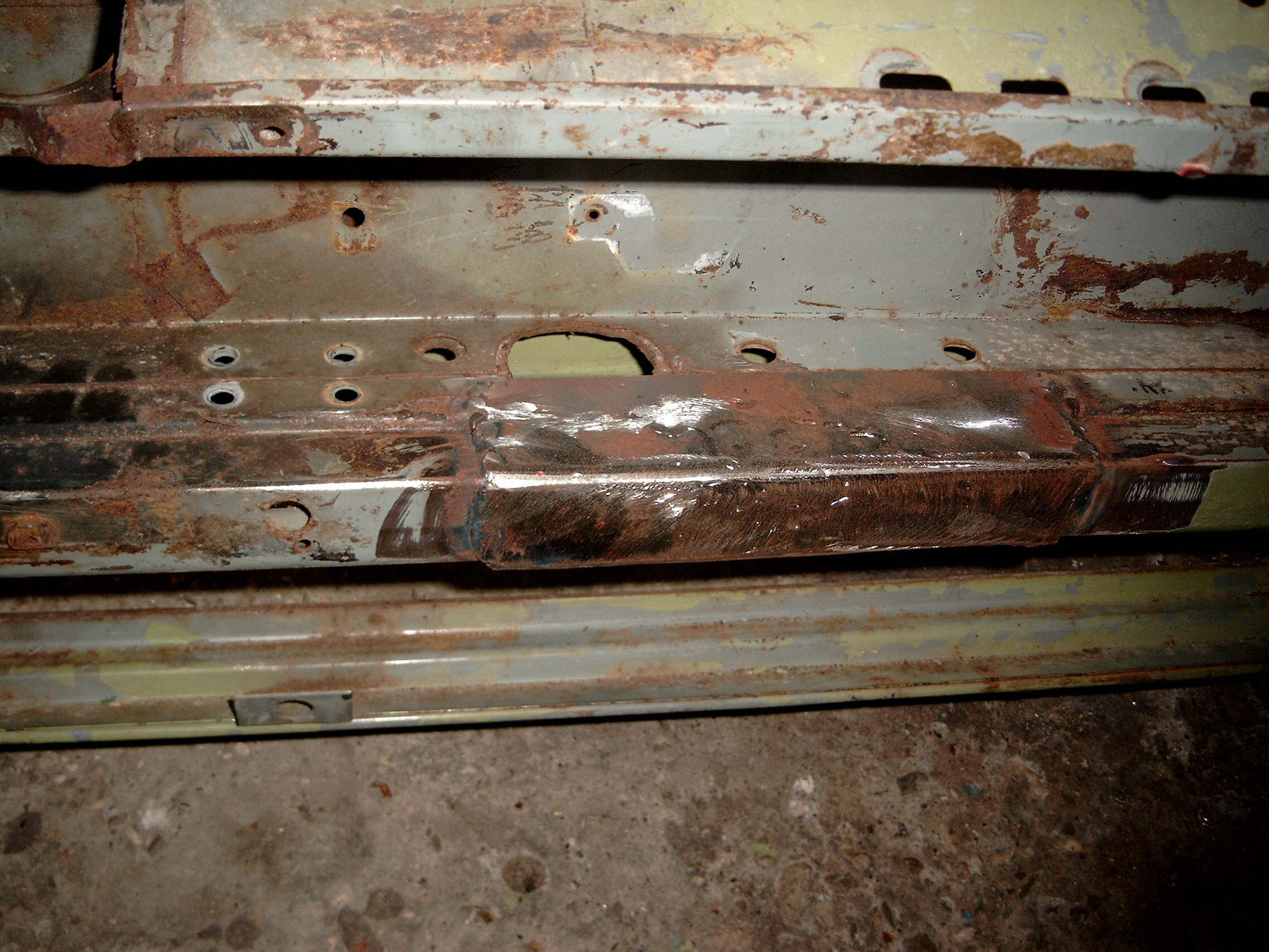 LR - 144002080 - Bulkhead - red-oxide - view of repaired "missing" section above steering wheel column |