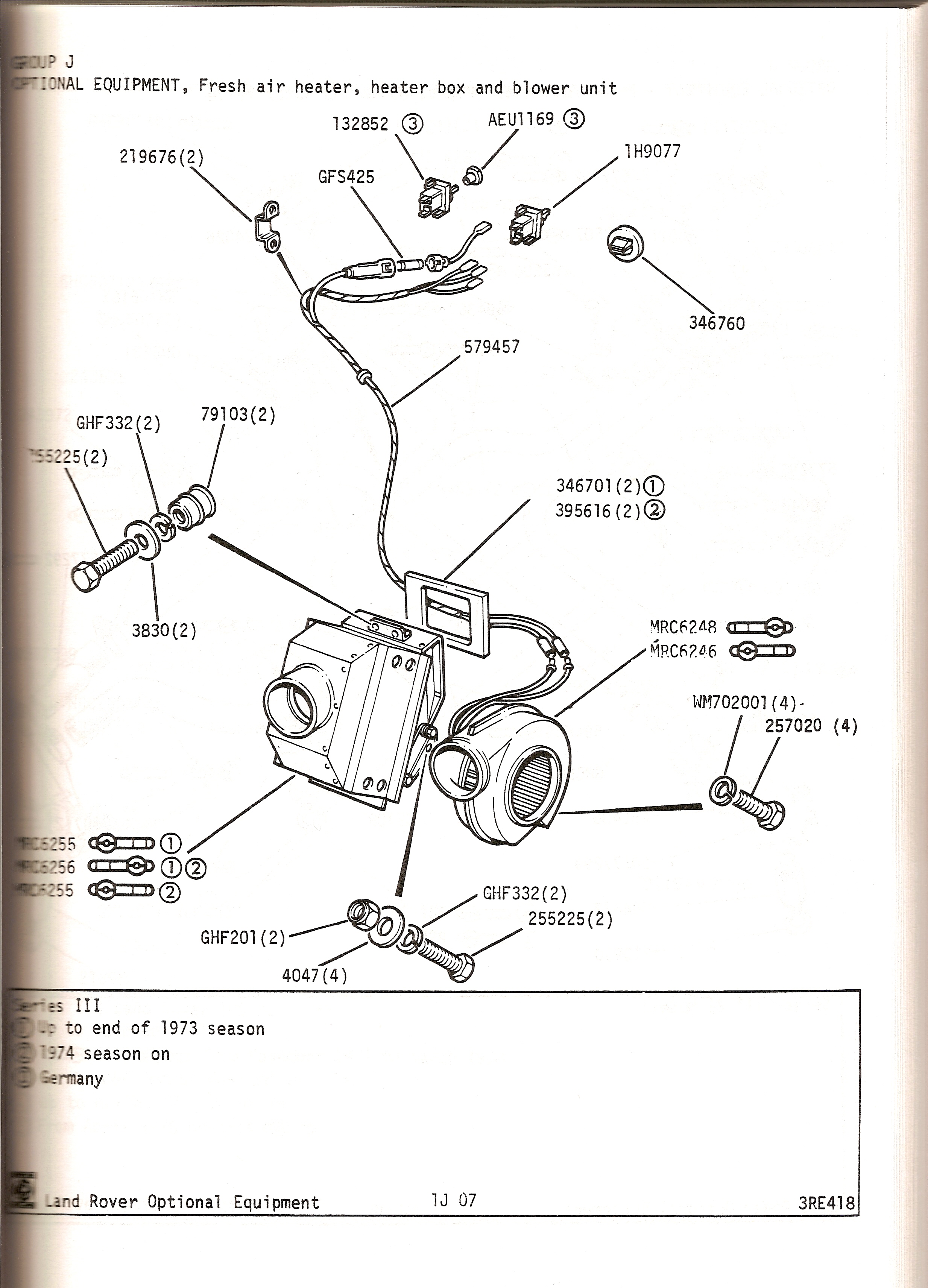 Parts diagramme - Series 3 - Fresh-air and heater |
