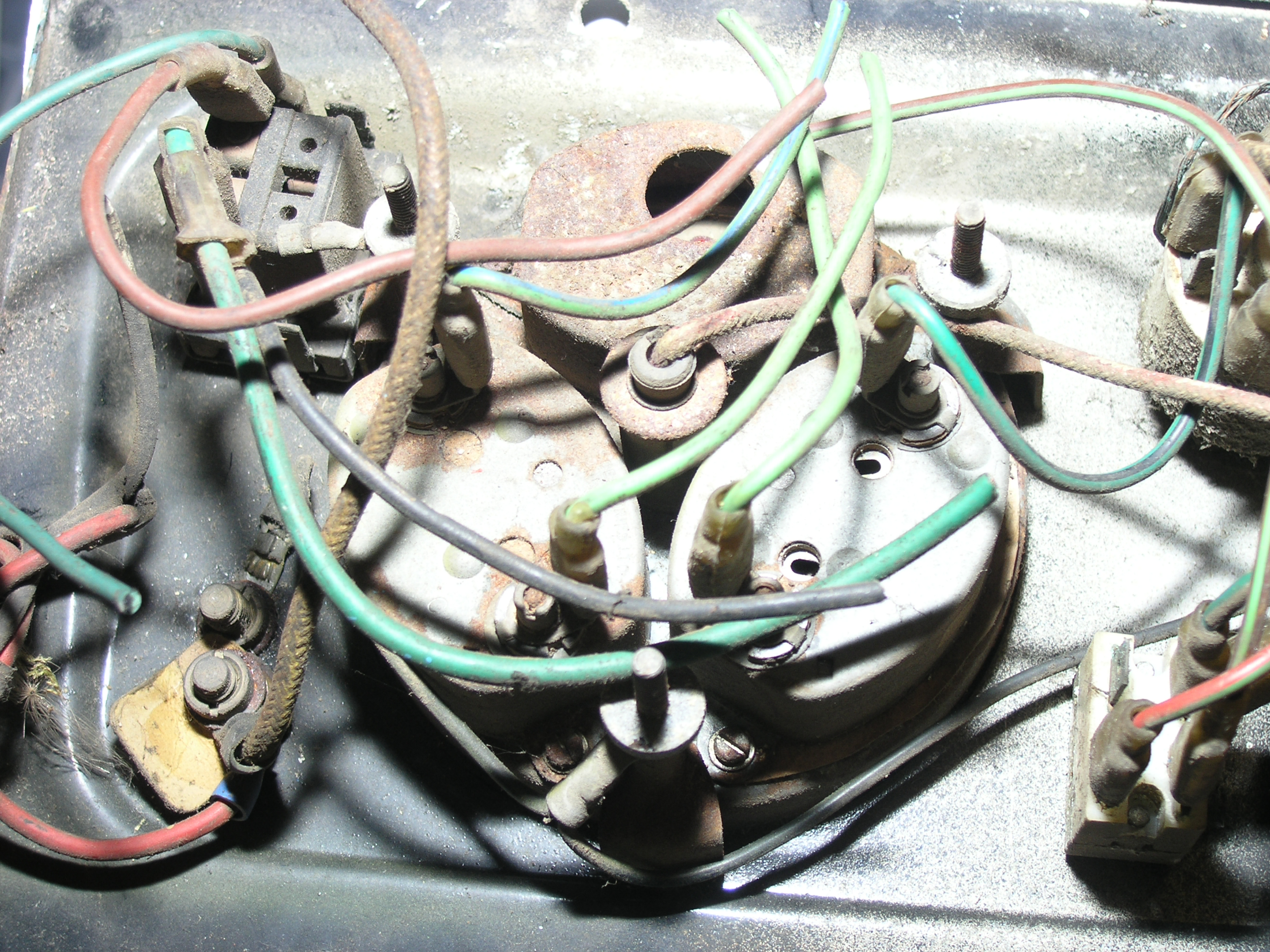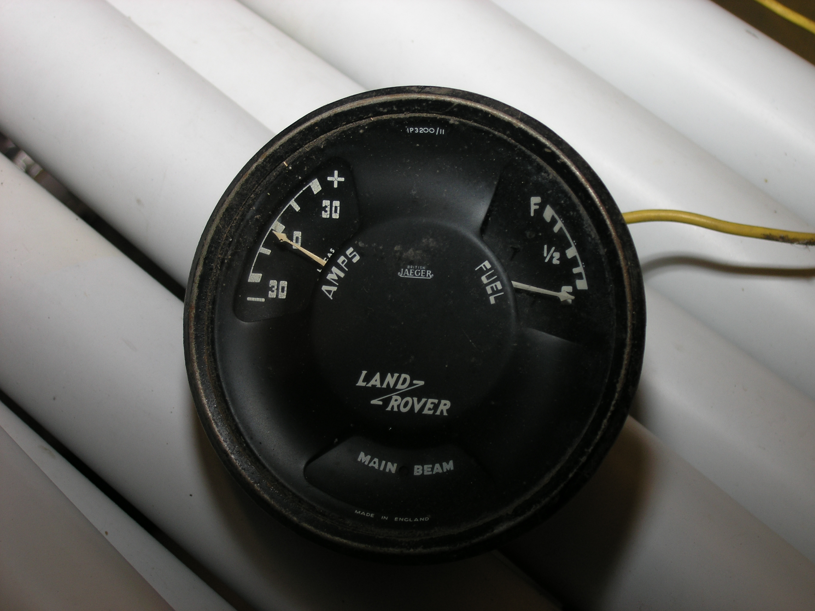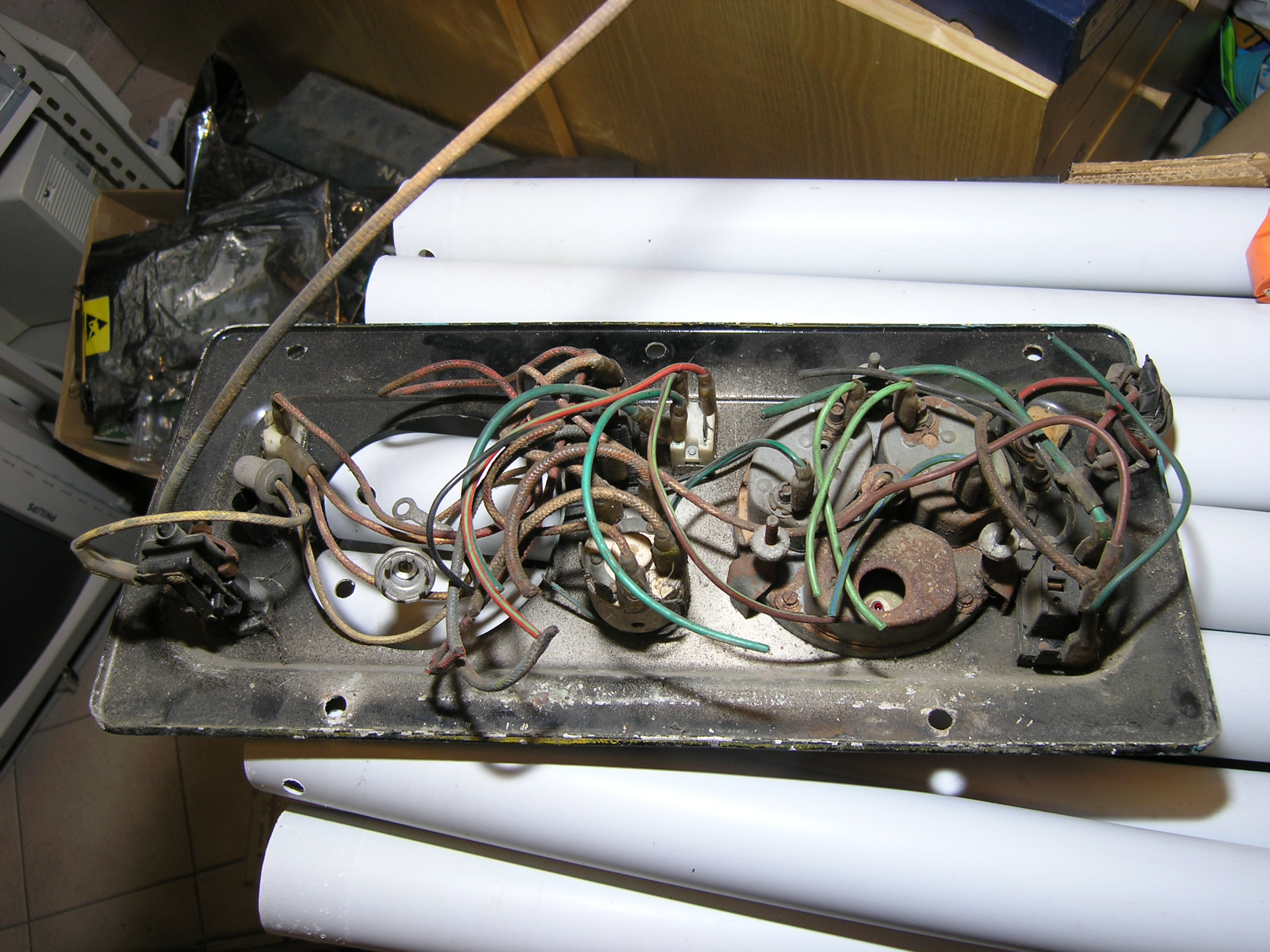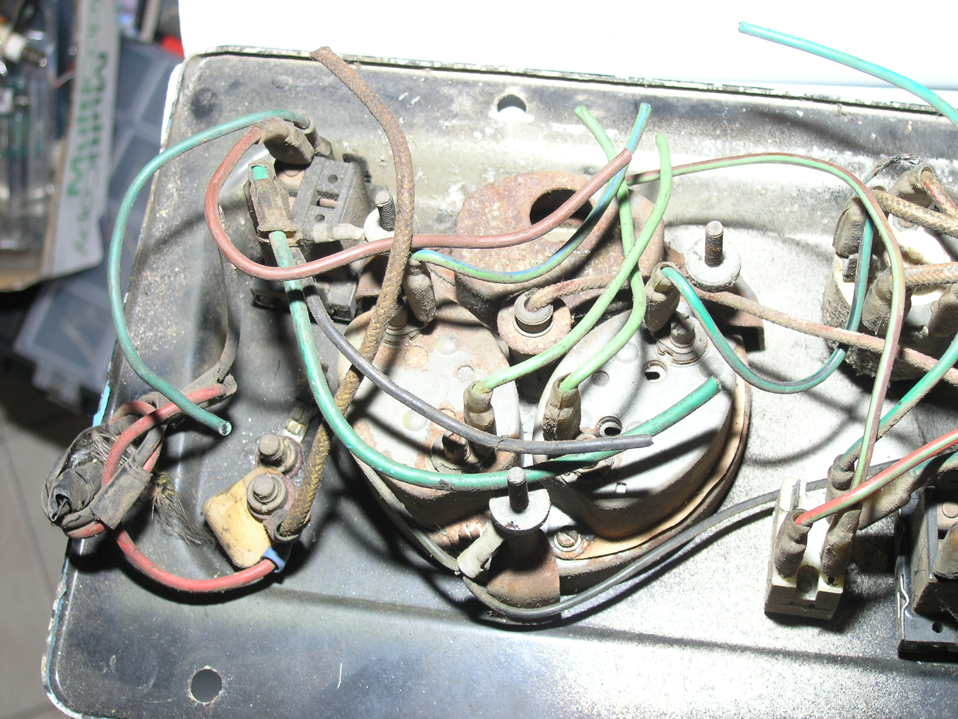 LR - 144002080 - Dashpanel - replacement - black later type with key-starter switch - Rear view - closeup of gauge assemblies |