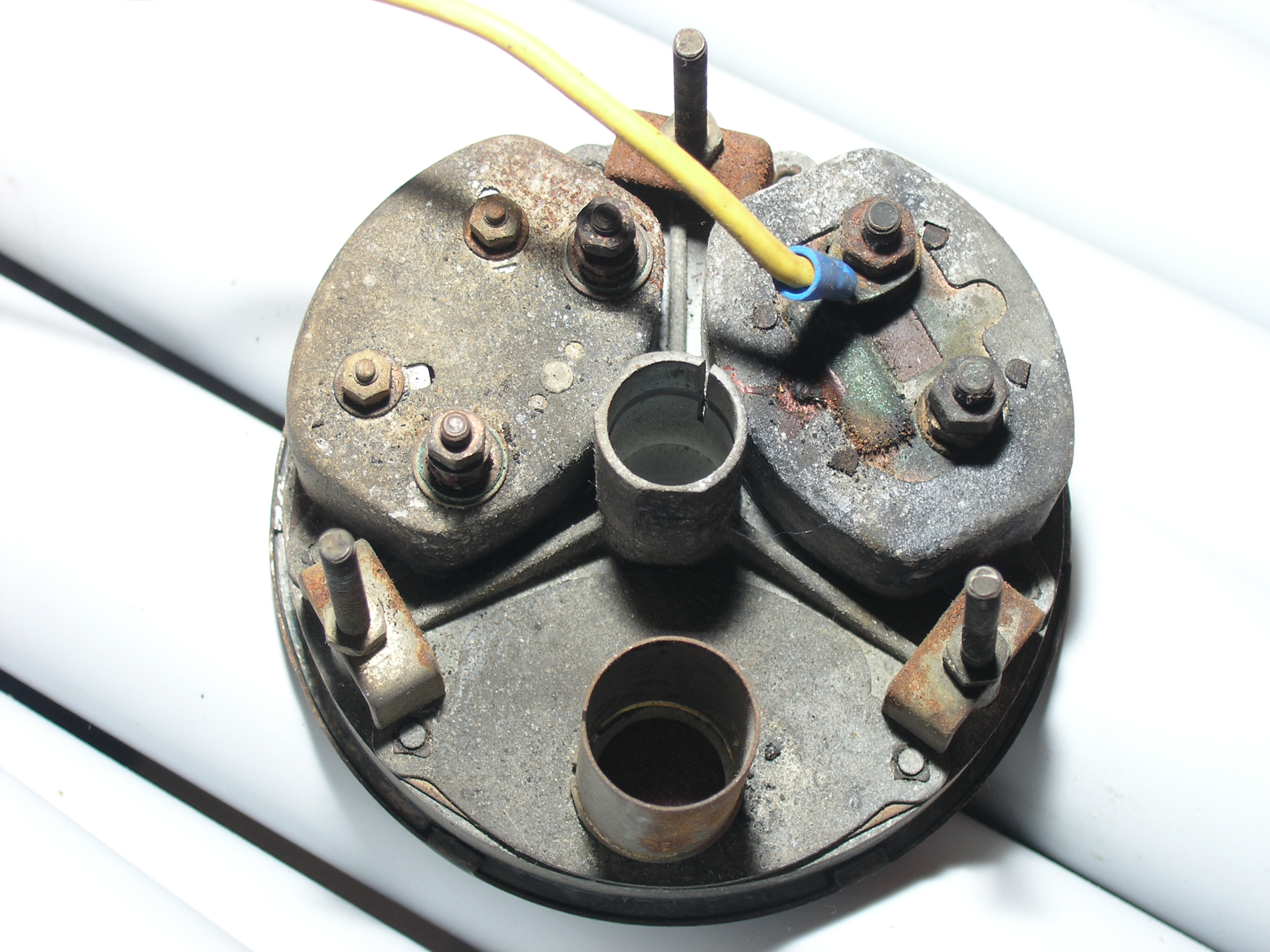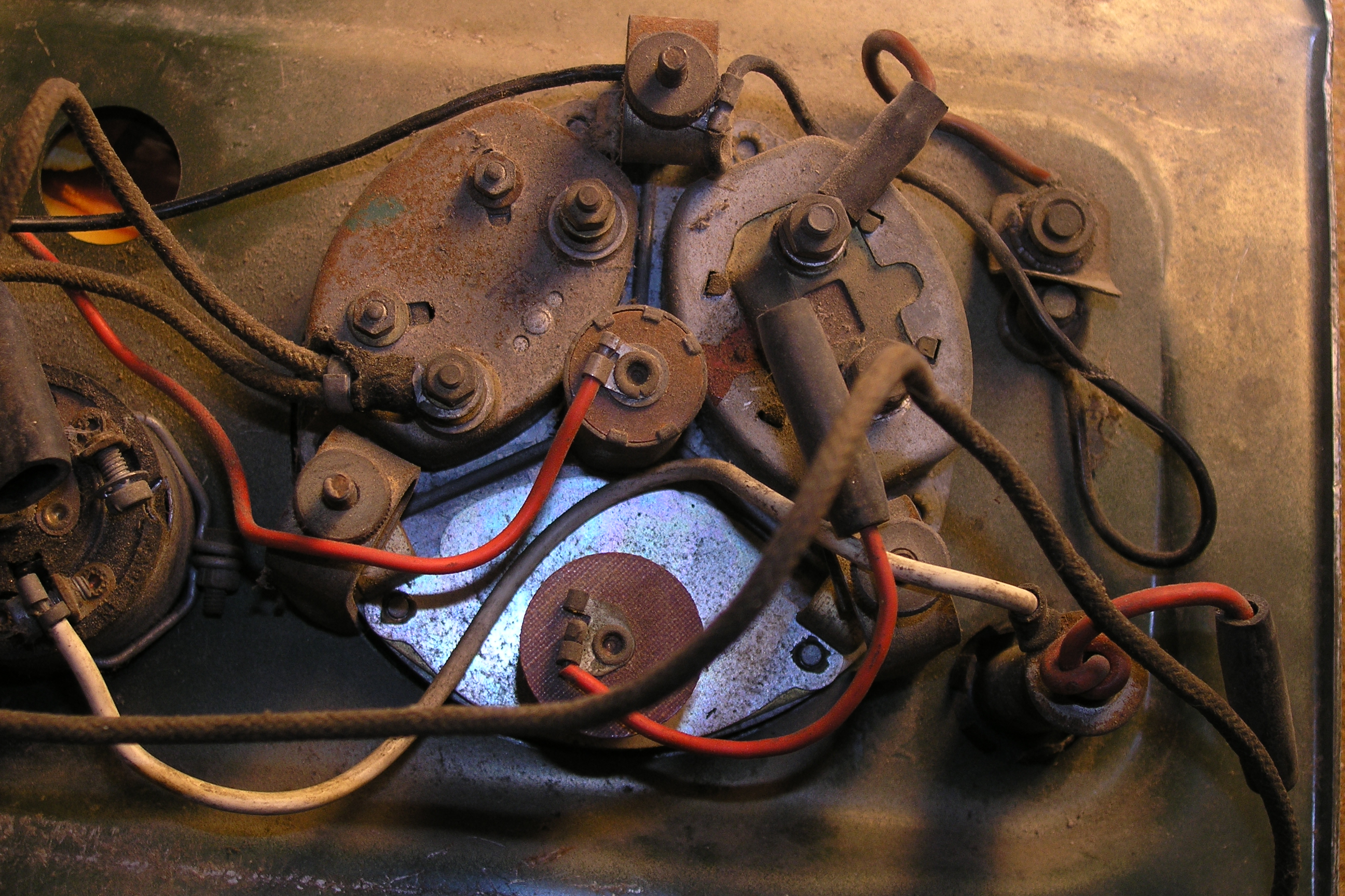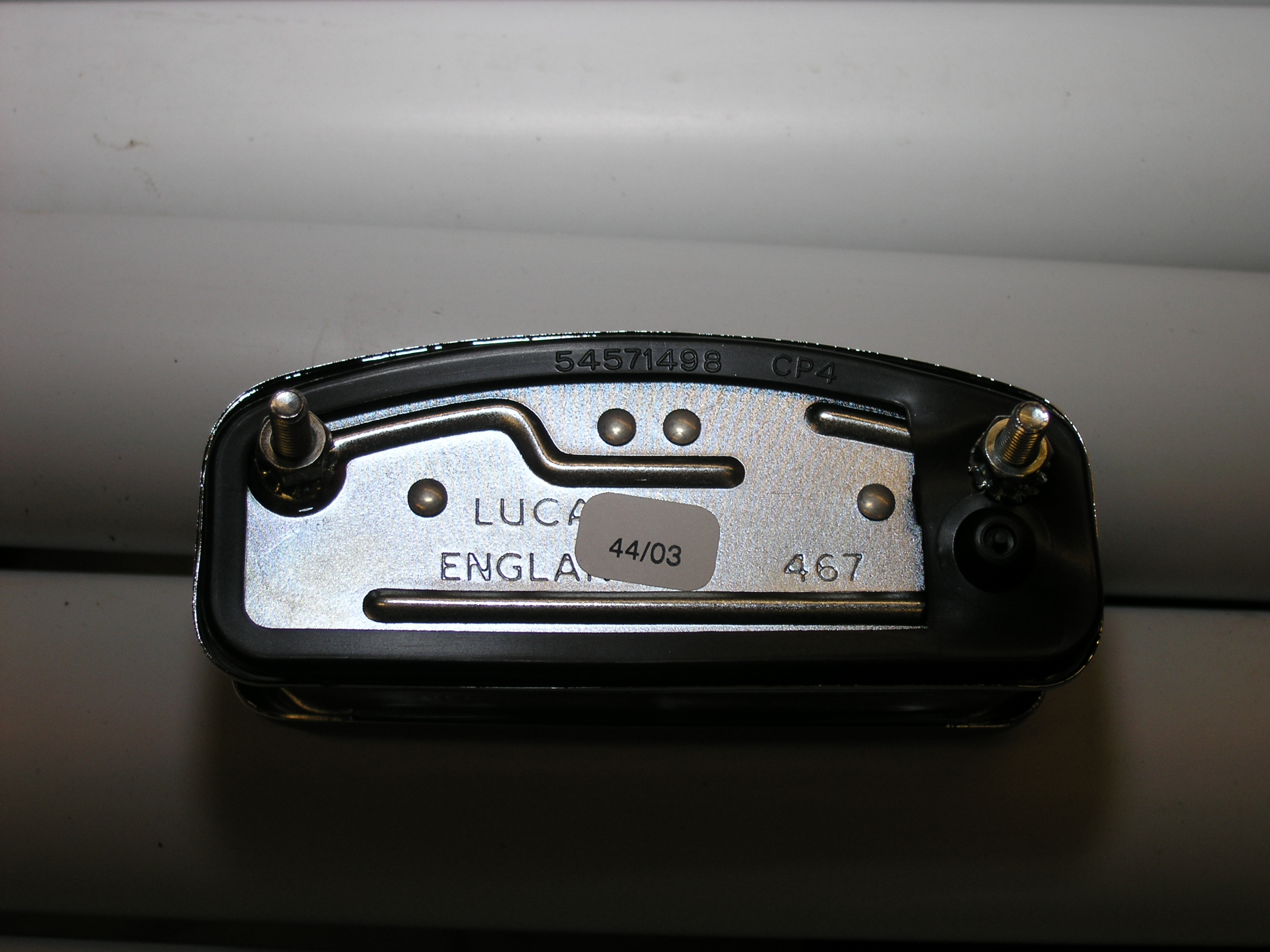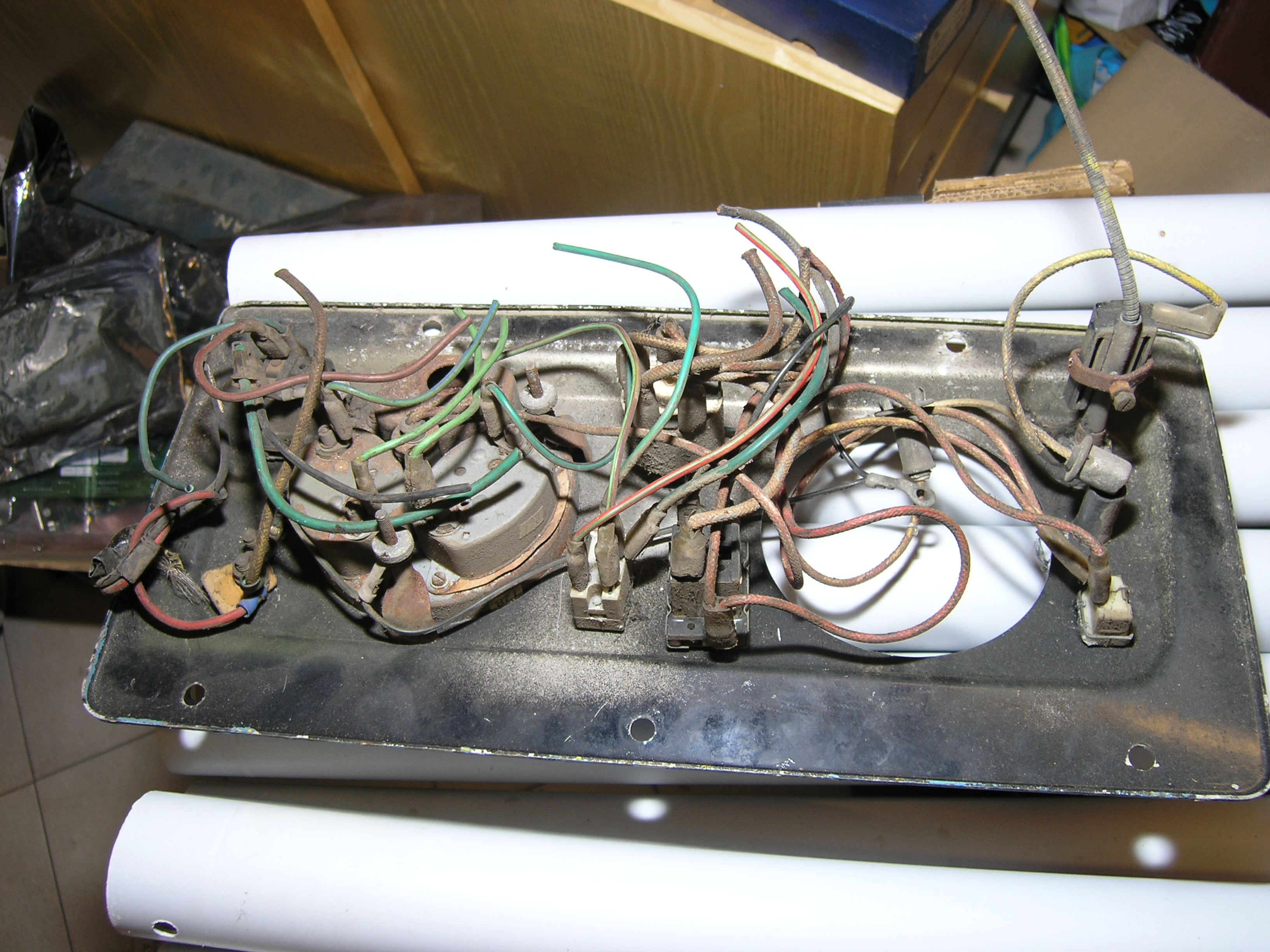 LR - 144002080 - Dashpanel - replacement - black later type with key-starter switch - Rear view - closeup of gauge assemblies |