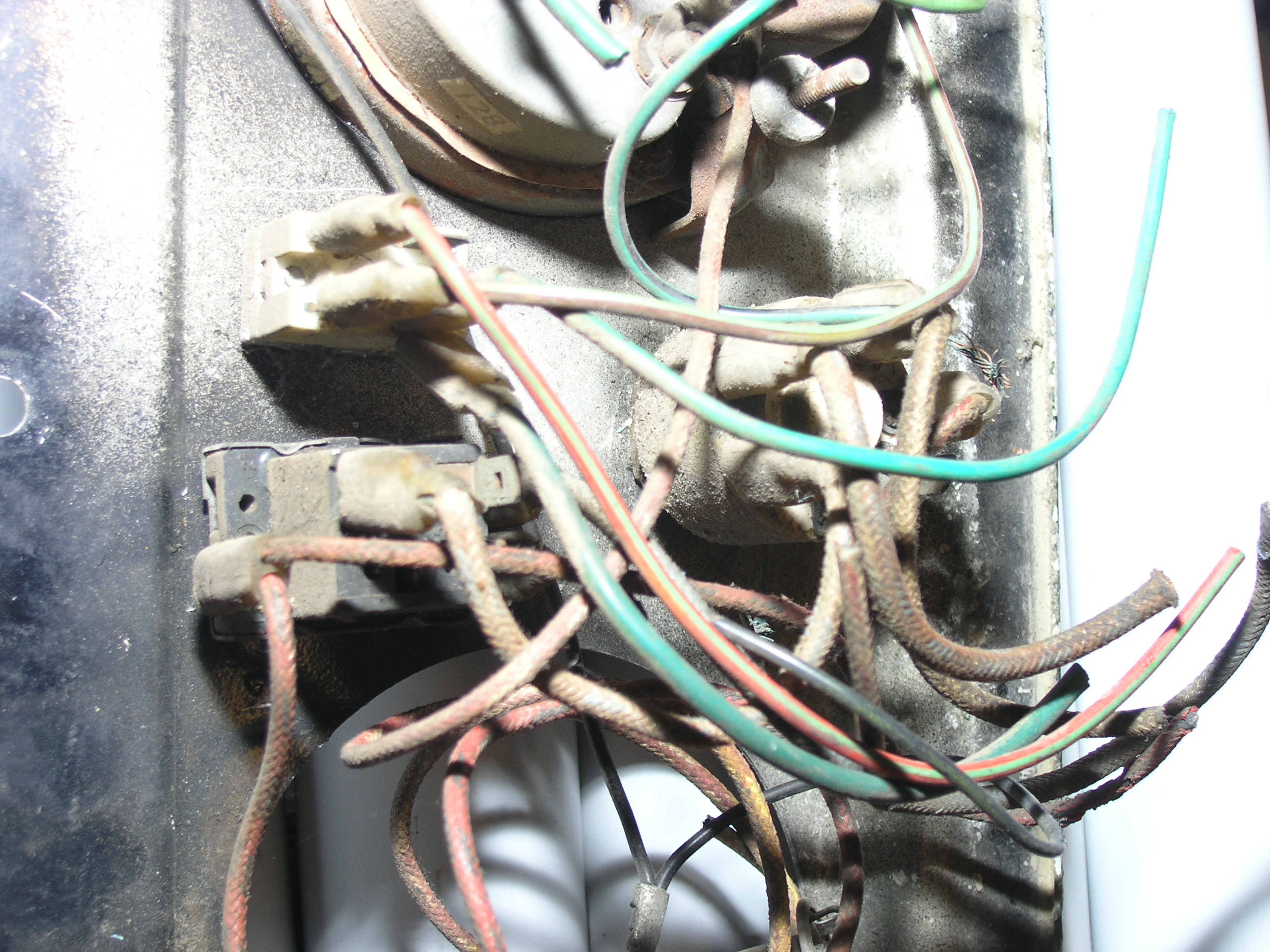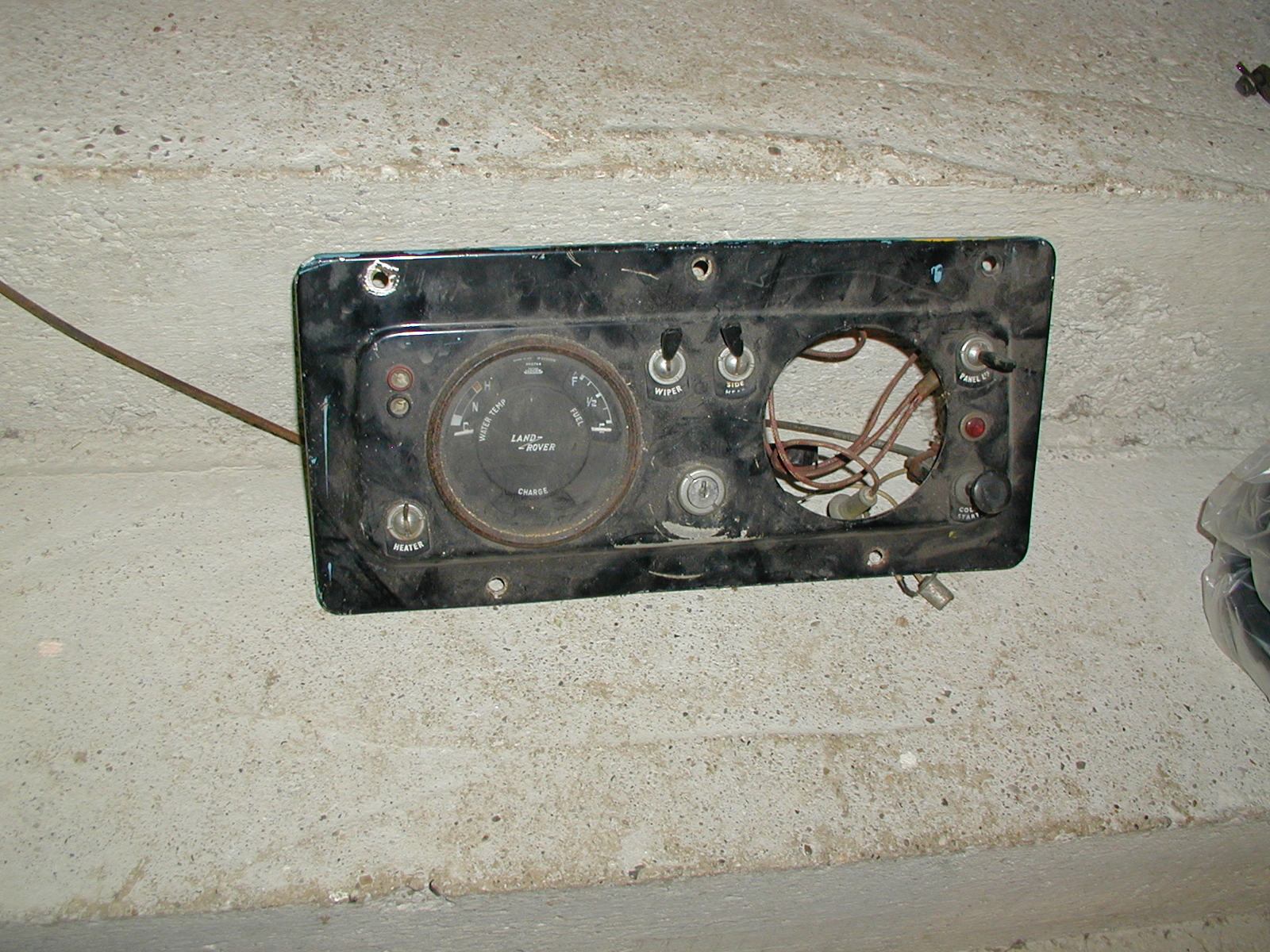 LR - 144002080 - Dashpanel - replacement - black later type with key-starter switch - Rear view - closeup of switches |