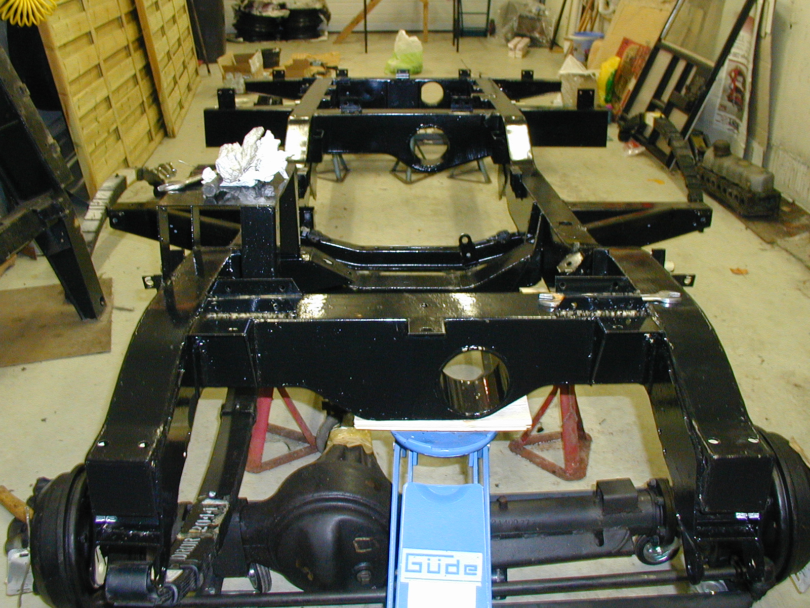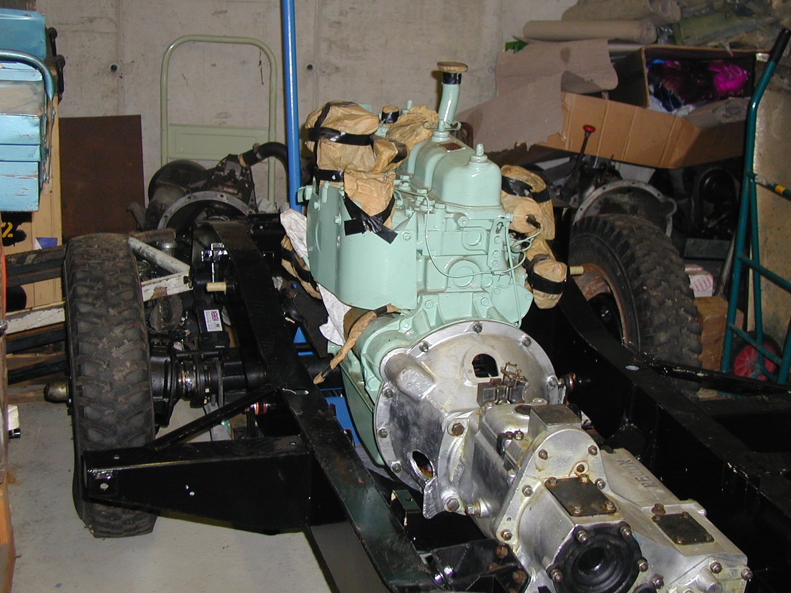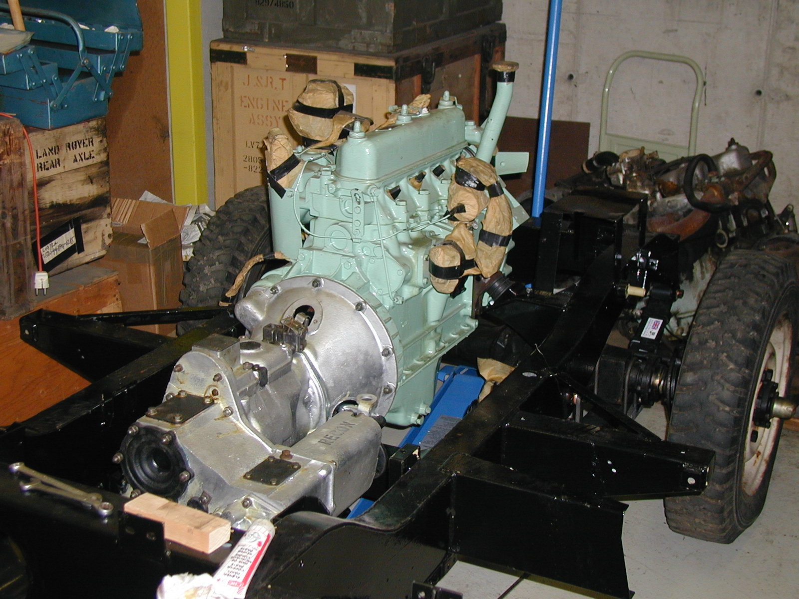 LR - 144002080 - Chassis from front in garage awaiting engine |