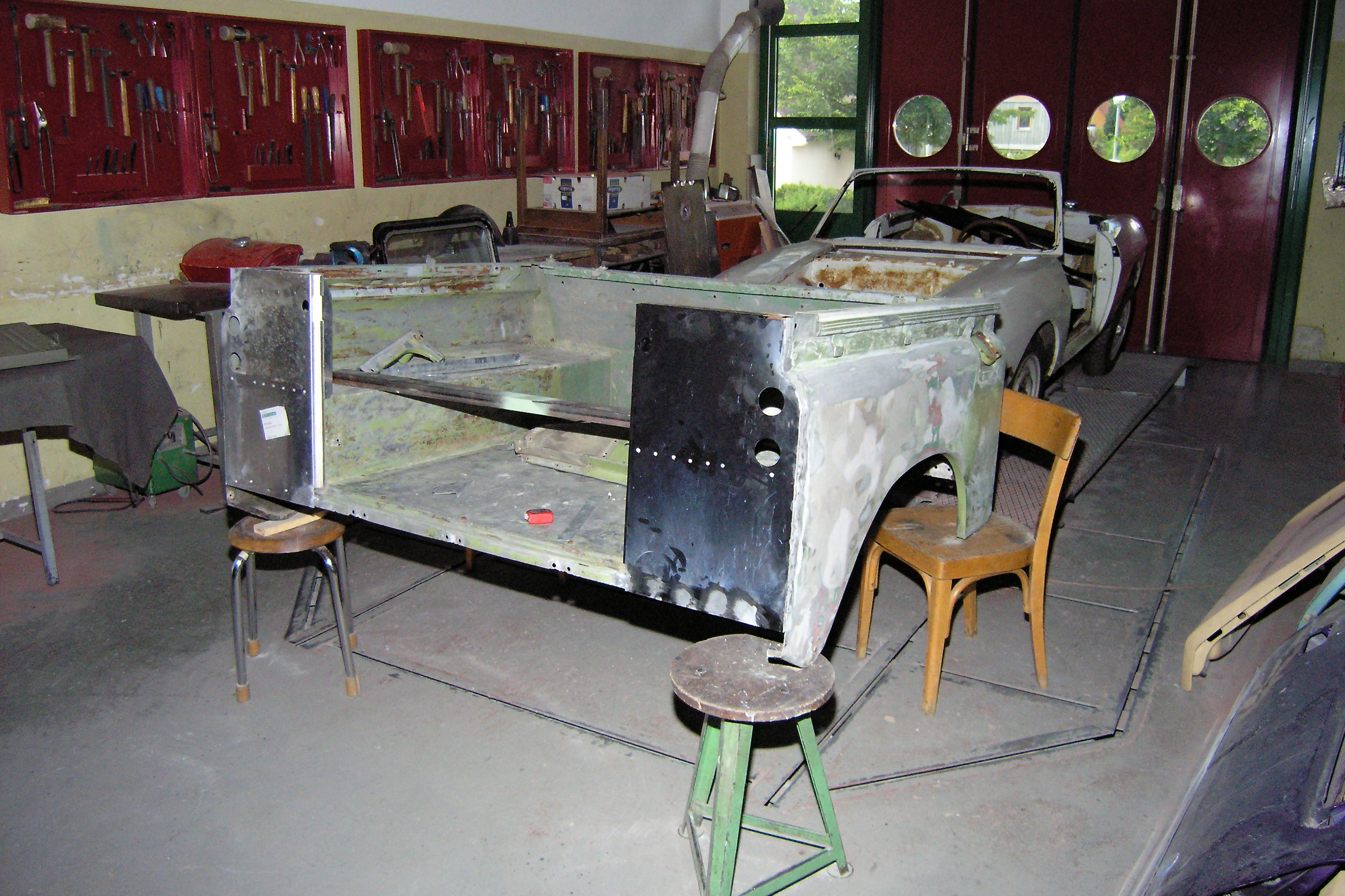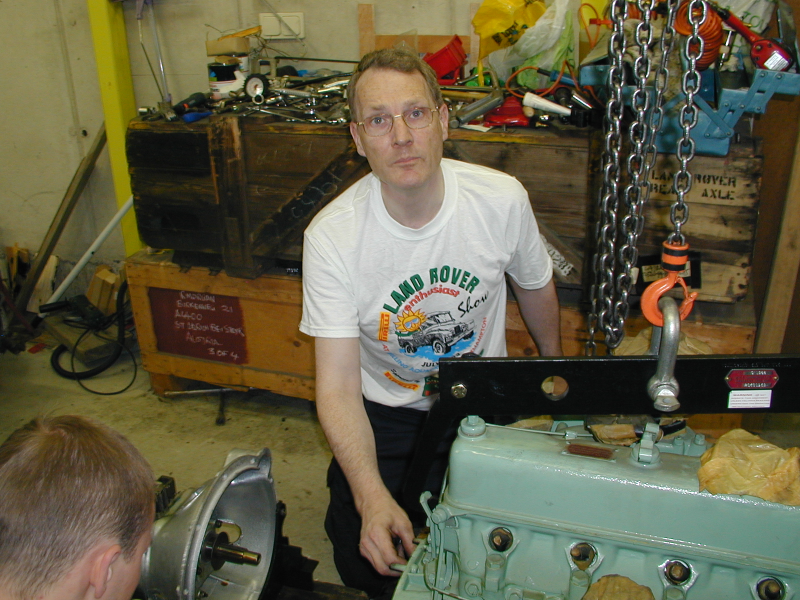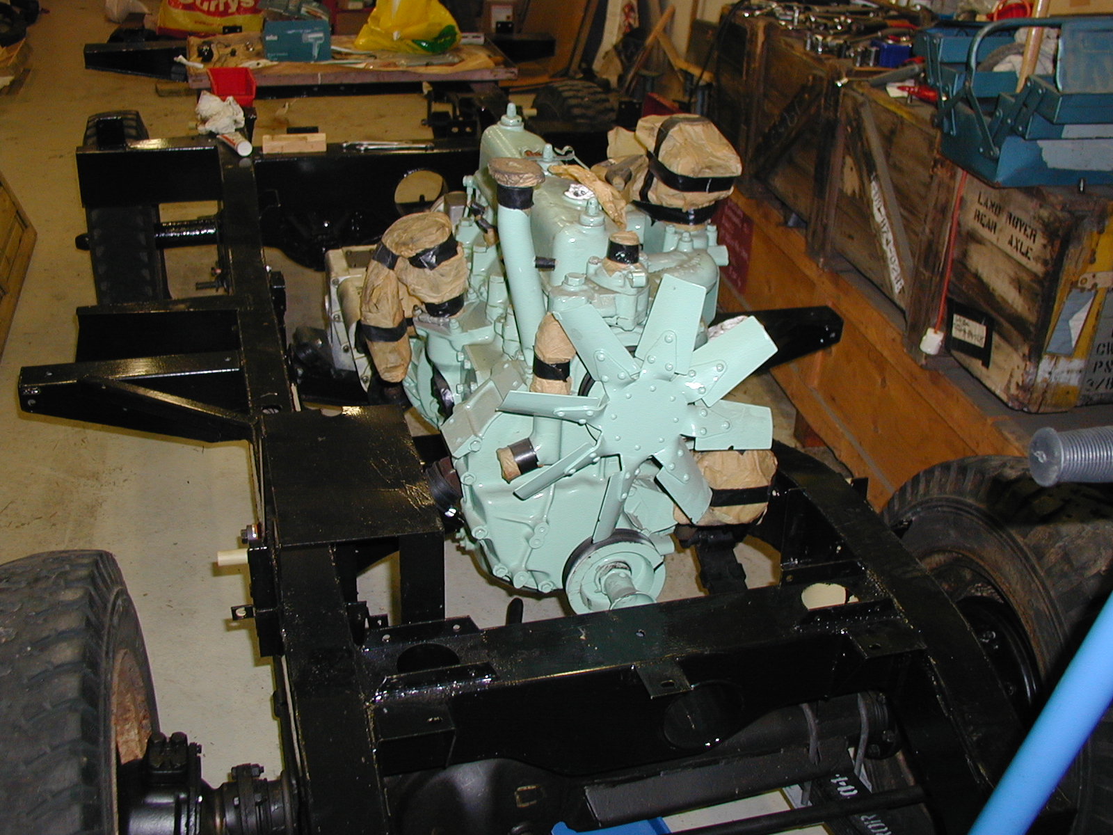 LR - 144002080 - Chassis from front in garage awaiting engine |