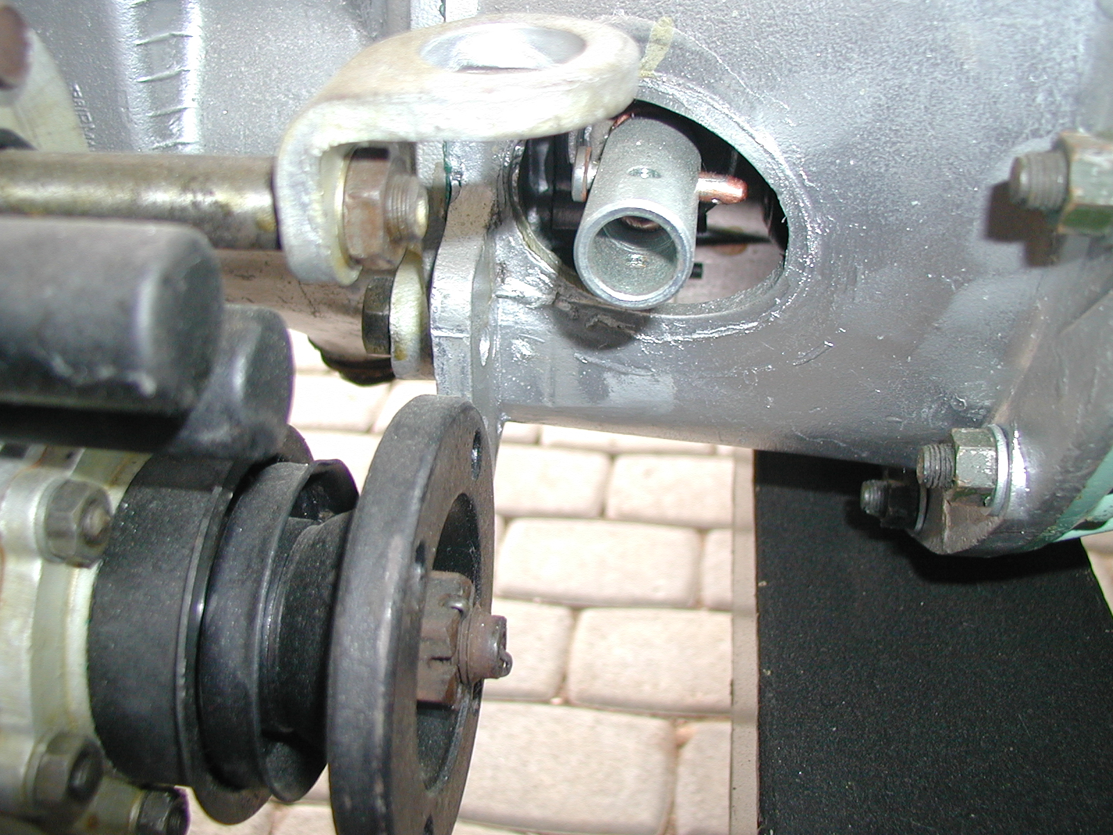 LR - 144002080 - Bulkhead - red-oxide - view of passenger side (rhs) hole for ventilation hose |