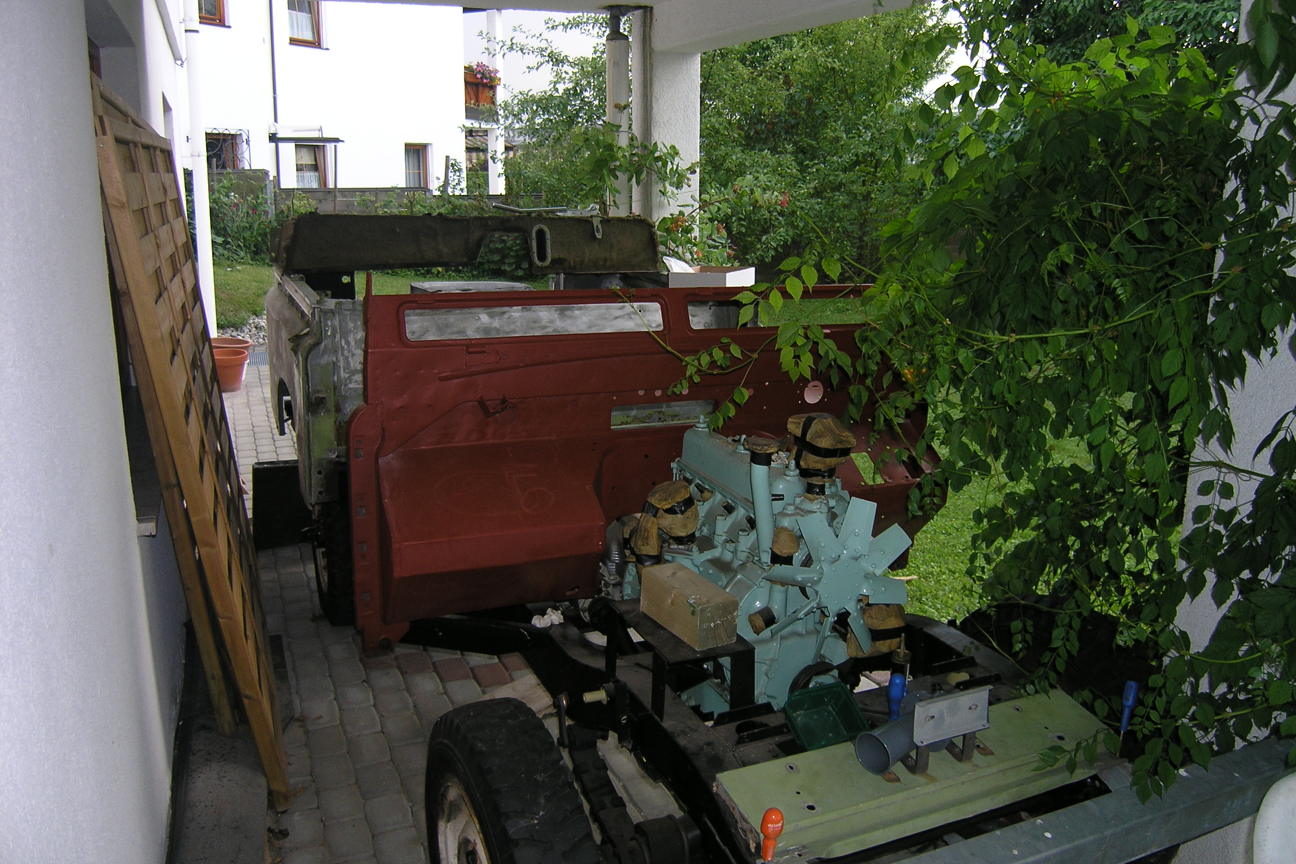 LR - 144002080 - Chassis propping up wall in garage 2nd. June 1998 |